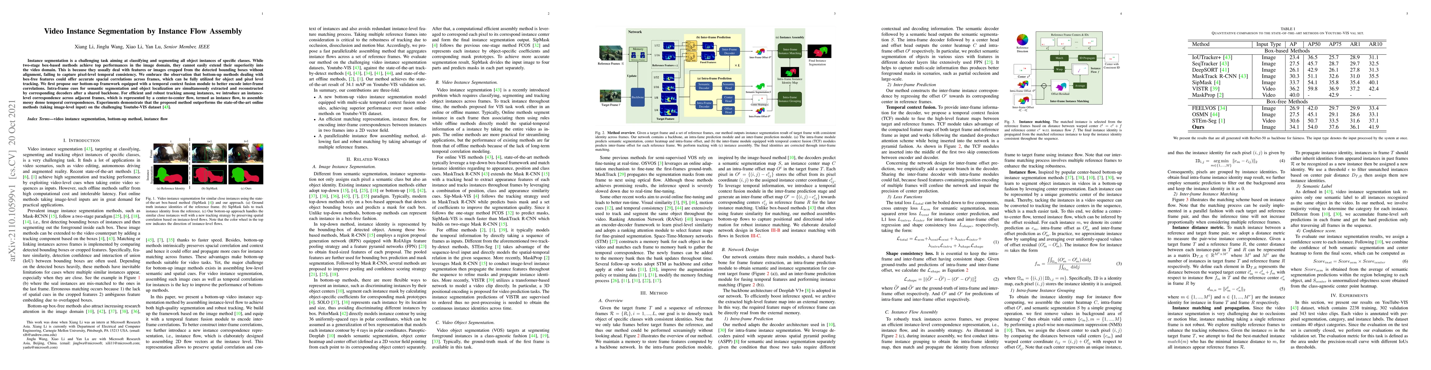 Instance segmentation is a challenging task aiming at classifying and segmenting all object instances of specific classes. While two-stage box-based methods achieve top performances in the image domain, they cannot easily extend their superiority into the video domain. This is because they usually deal with features or images cropped from the detected bounding boxes without alignment, failing to capture pixel-level temporal consistency. We embrace the observation that bottom-up methods dealing with box-free features could offer accurate spacial correlations across frames, which can be fully utilized for object and pixel level tracking. We first propose our bottom-up framework equipped with a temporal context fusion module to better encode inter-frame correlations. Intra-frame cues for semantic segmentation and object localization are simultaneously extracted and reconstructed by corresponding decoders after a shared backbone. For efficient and robust tracking among instances, we introduce an instance-level correspondence across adjacent frames, which is represented by a center-to-center flow, termed as instance flow, to assemble messy dense temporal correspondences. Experiments demonstrate that the proposed method outperforms the state-of-the-art online methods (taking image-level input) on the challenging Youtube-VIS dataset.