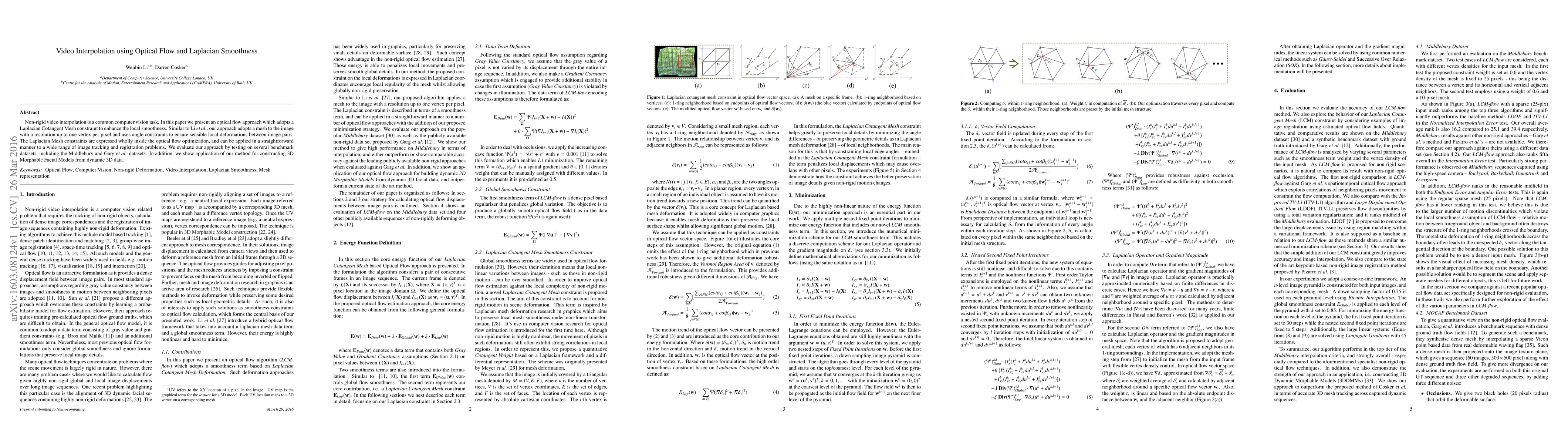 This paper presents an optical flow approach for video interpolation that incorporates Laplacian smoothness constraints to enhance local deformation between image pairs.