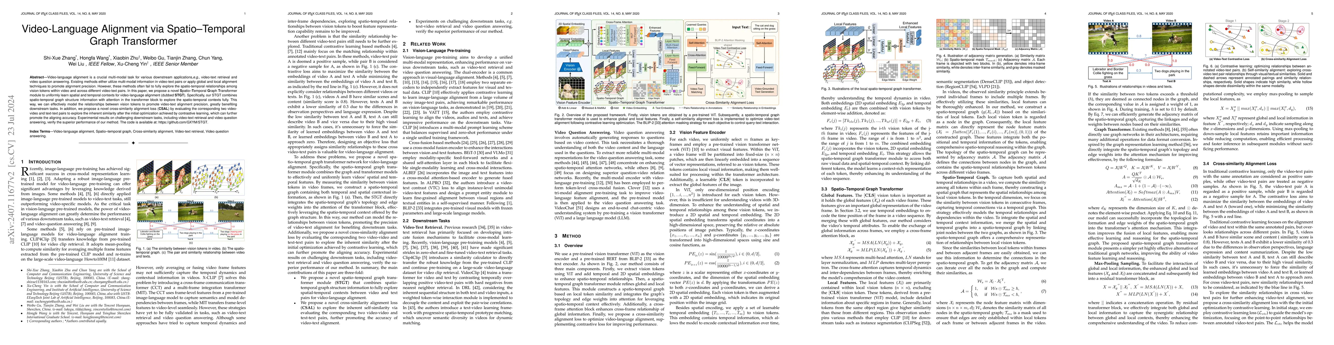 This paper introduces a Spatio-Temporal Graph Transformer module (STGT) for video-language alignment pre-training, utilizing spatio-temporal graph structure and attention to enhance the alignment precision for downstream tasks like video-text retrieval and question answering. The method also employs a self-similarity alignment loss and contrastive learning to improve alignment accuracy.