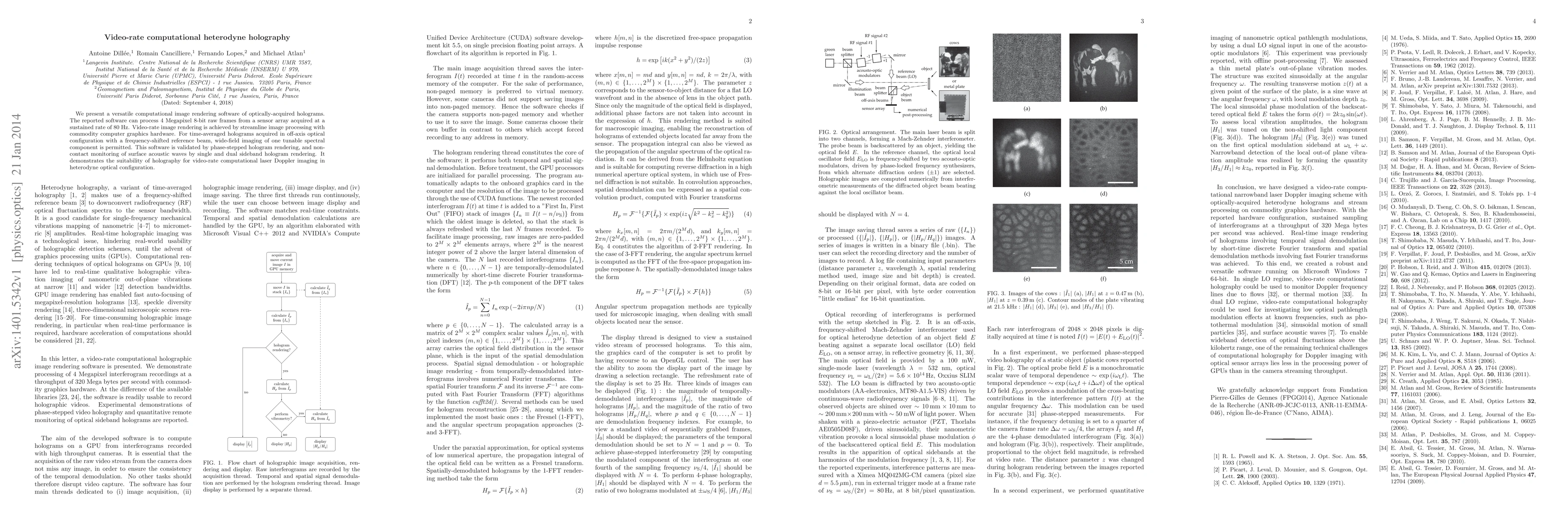 This paper introduces a computational software for rendering optically-acquired holograms at video rates using standard graphics hardware, validated through applications like monitoring surface acoustic waves. The software processes 4 Megapixel frames at 80 Hz, enabling wide-field imaging of a tunable spectral component in heterodyne holography.