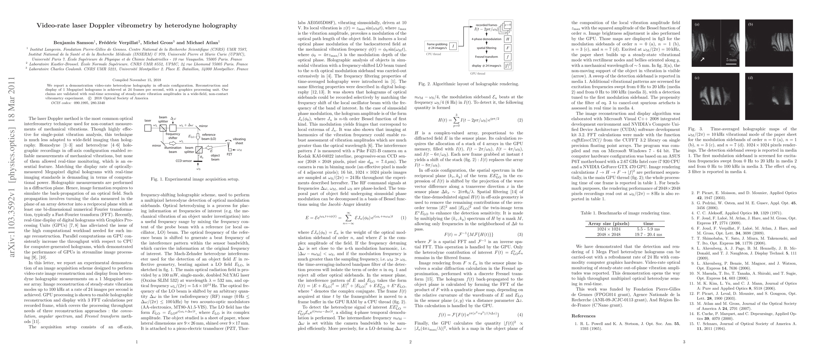This paper demonstrates video-rate heterodyne holography in an off-axis configuration, achieving 1 Megapixel hologram reconstruction at 24 frames per second using a GPU, and validates the technique through real-time non-contact vibrometry of steady-state vibration amplitudes.