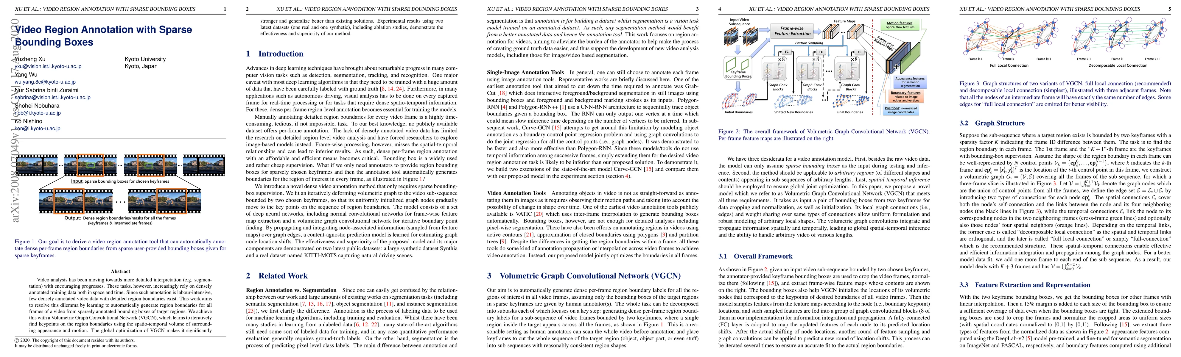 The paper proposes a Volumetric Graph Convolutional Network (VGCN) that learns to automatically generate region boundaries for all frames of a video using sparse bounding boxes of target regions. It leverages spatio-temporal volume of surrounding appearance and motion features.