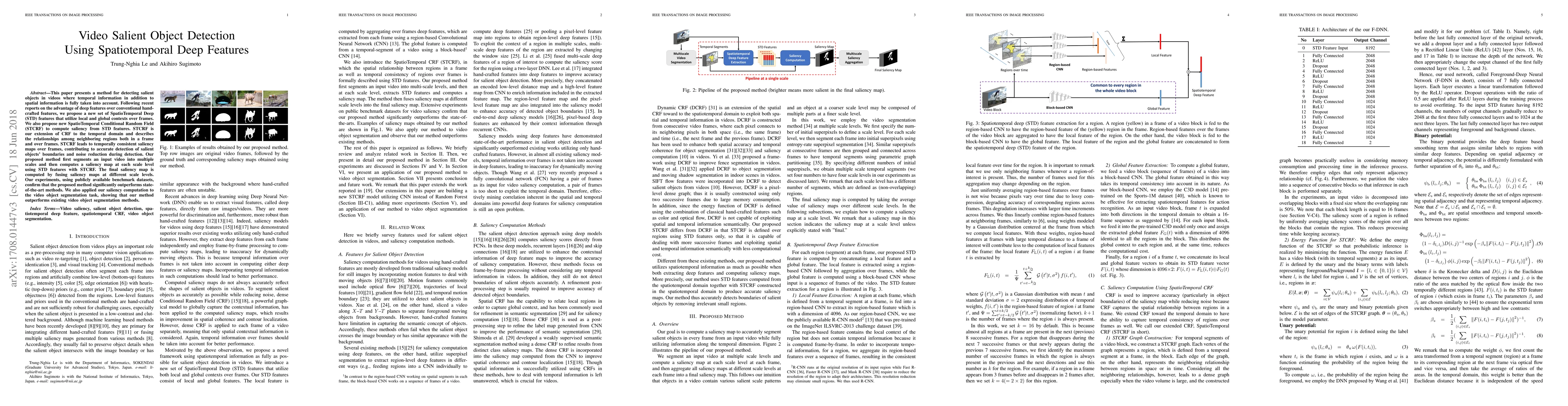 This paper proposes a method for detecting salient objects in videos using SpatioTemporal Deep (STD) features and a SpatioTemporal Conditional Random Field (STCRF) to compute saliency, achieving superior performance compared to state-of-the-art methods and improving video object segmentation.