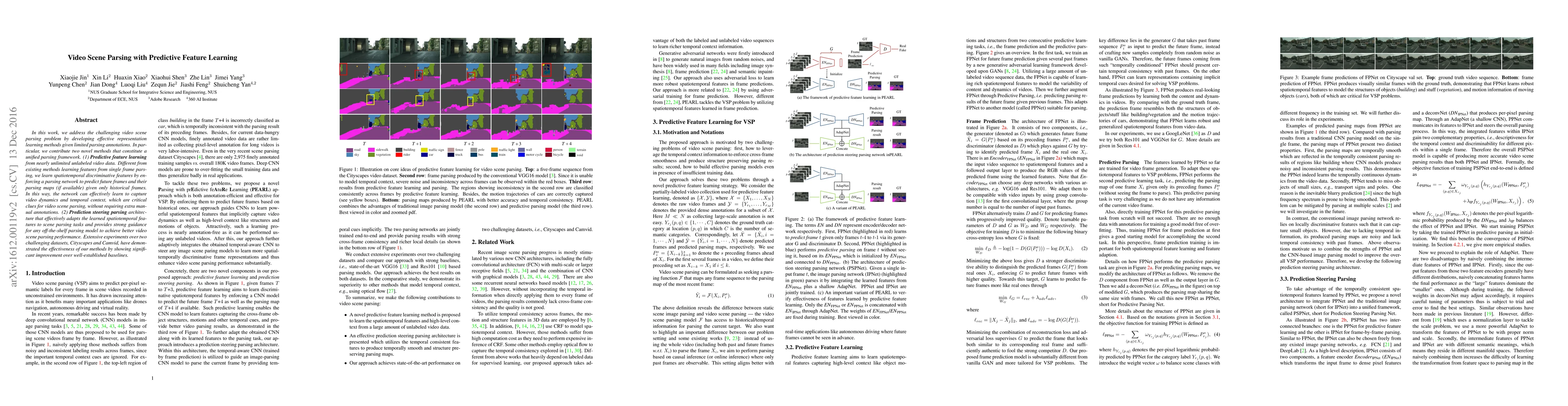 This paper presents two innovative methods for video scene parsing: predictive feature learning from unlabeled video data and prediction steering parsing architecture. The methods leverage spatiotemporal context and temporal dynamics without extra annotations, showing significant improvements over baselines on Cityscapes and Camvid datasets.