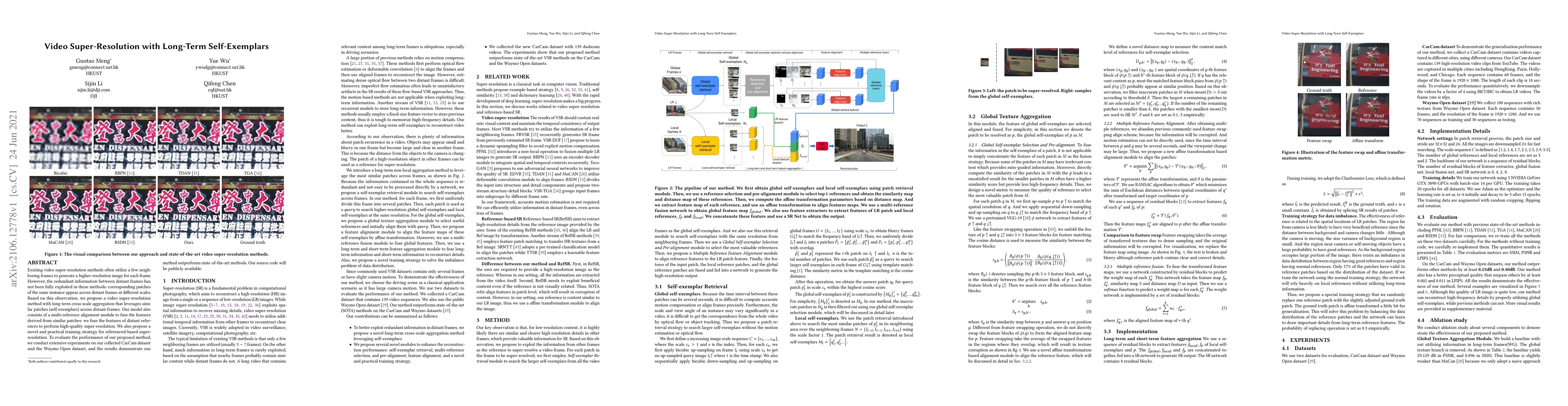 This paper proposes a video super-resolution method that leverages long-term self-exemplars across distant frames to exploit redundant information, enhancing resolution through cross-scale aggregation and multi-reference alignment. Experiments on CarCam and Waymo Open datasets show superior performance compared to state-of-the-art methods.