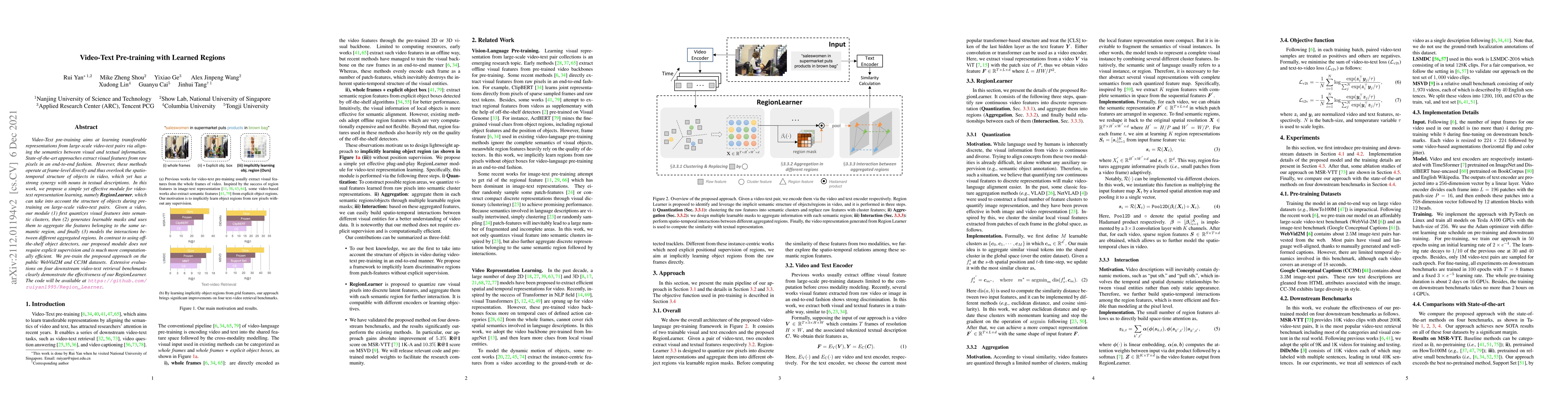 This paper proposes a novel approach called RegionLearner for video-text pre-training, which leverages spatio-temporal structure of objects in videos to learn transferable representations from large-scale video-text pairs.