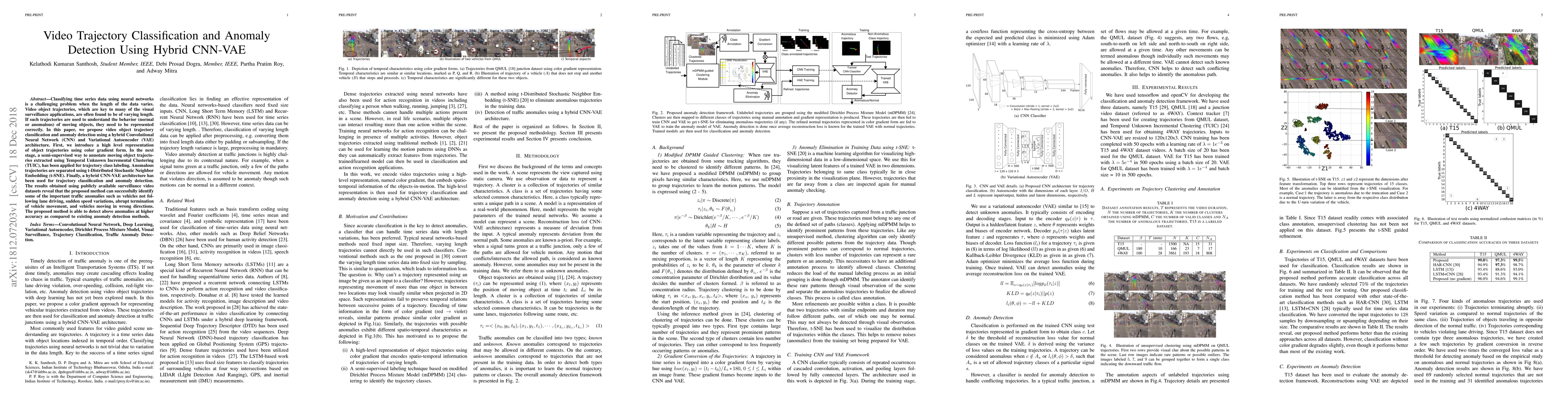 This paper proposes a hybrid CNN-VAE architecture for classifying and detecting anomalies in video object trajectories using color gradient representations and semi-supervised annotation. The method achieves higher accuracy in identifying traffic anomalies compared to existing methods.