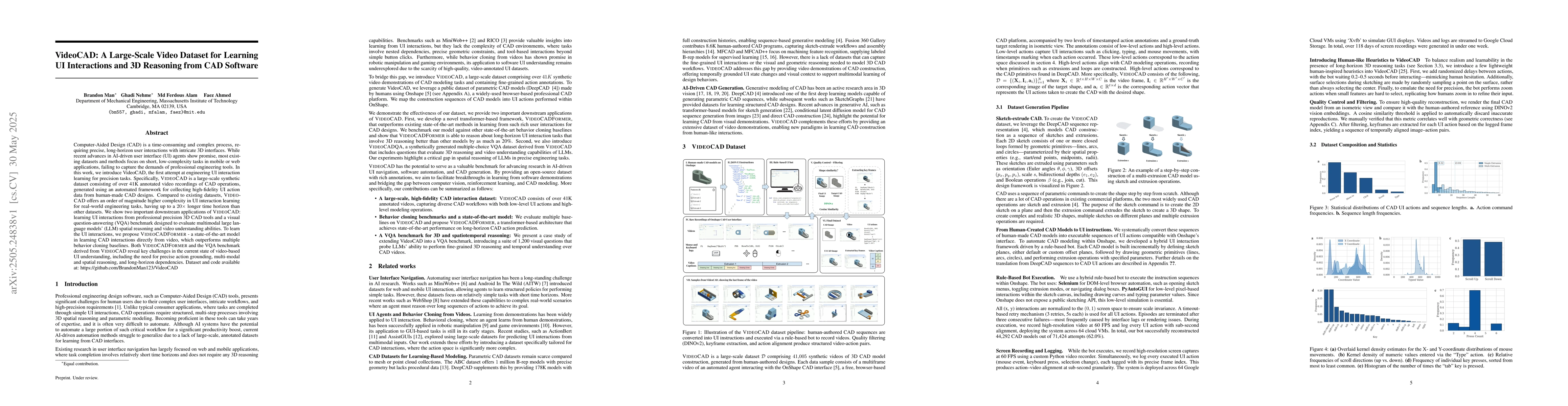 Researchers introduced VideoCAD, a large-scale video dataset for learning UI interactions and 3D reasoning from CAD software, which shows promise in addressing the demands of professional engineering tools.