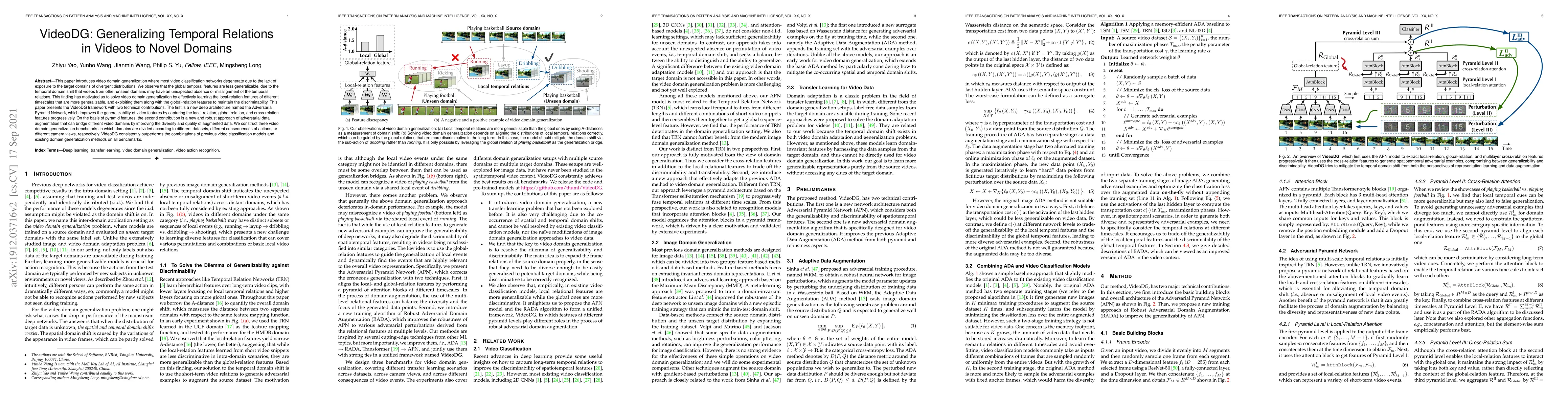 This paper introduces a new framework called VideoDG that improves video domain generalization by learning local-relation features and exploiting them with global-relation features to maintain discriminability.