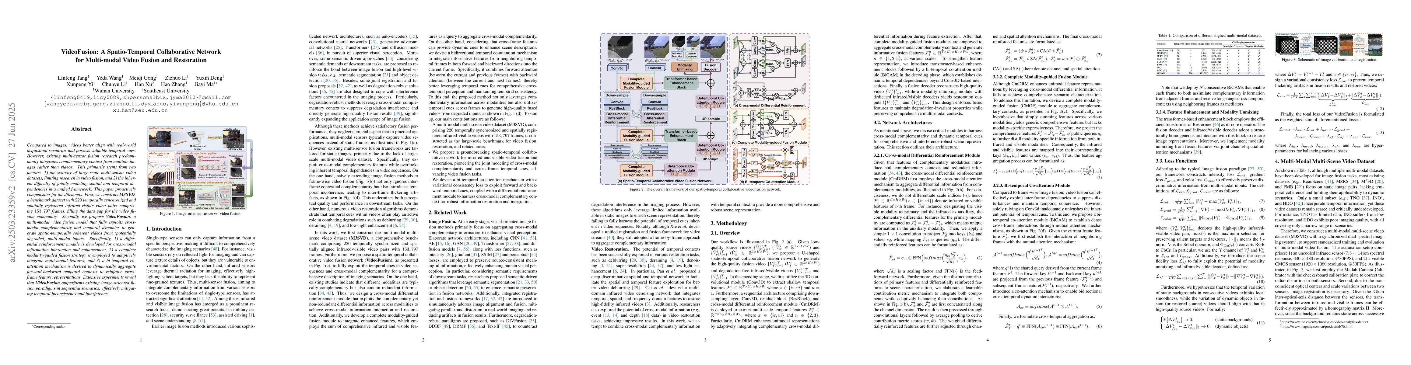 Compared to images, videos better align with real-world acquisition scenarios and possess valuable temporal cues. However, existing multi-sensor fusion research predominantly integrates complementary context from multiple images rather than videos. This primarily stems from two factors: 1) the scarcity of large-scale multi-sensor video datasets, limiting research in video fusion, and 2) the inherent difficulty of jointly modeling spatial and temporal dependencies in a unified framework. This paper proactively compensates for the dilemmas. First, we construct M3SVD, a benchmark dataset with $220$ temporally synchronized and spatially registered infrared-visible video pairs comprising 153,797 frames, filling the data gap for the video fusion community. Secondly, we propose VideoFusion, a multi-modal video fusion model that fully exploits cross-modal complementarity and temporal dynamics to generate spatio-temporally coherent videos from (potentially degraded) multi-modal inputs. Specifically, 1) a differential reinforcement module is developed for cross-modal information interaction and enhancement, 2) a complete modality-guided fusion strategy is employed to adaptively integrate multi-modal features, and 3) a bi-temporal co-attention mechanism is devised to dynamically aggregate forward-backward temporal contexts to reinforce cross-frame feature representations. Extensive experiments reveal that VideoFusion outperforms existing image-oriented fusion paradigms in sequential scenarios, effectively mitigating temporal inconsistency and interference.