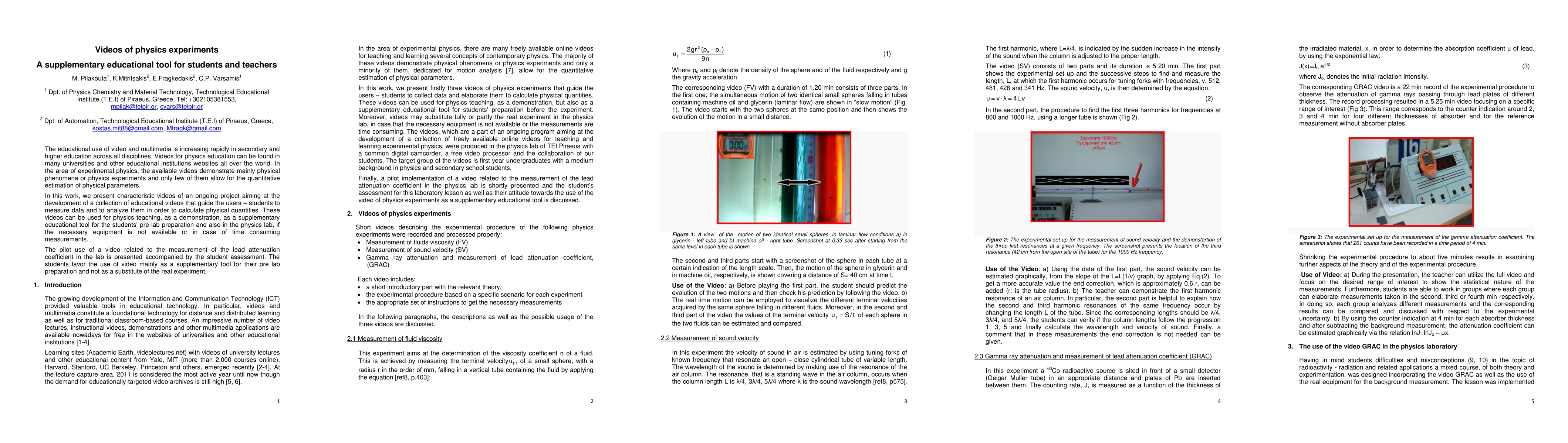 The educational use of video and multimedia is increasing rapidly in secondary and higher education across all disciplines. Videos for physics education can be found in many universities and other educational institutions websites all over the world. In the area of experimental physics, the available videos demonstrate mainly physical phenomena or physics experiments and only few of them allow for the quantitative estimation of physical parameters. In this work, we present characteristic videos of an ongoing project aiming at the development of a collection of educational videos that guide students to measure data and to analyze them in order to calculate physical quantities. These videos can be used for physics teaching, as a demonstration, as a supplementary educational tool for the students pre lab preparation and also in the physics lab, if the necessary equipment is not available or in case of time consuming measurements. The pilot use of a video related to the measurement of the lead attenuation coefficient in the lab is presented accompanied by the student assessment. The students favor the use of video mainly as a supplementary tool for their pre lab preparation and not as a substitute of the real experiment.