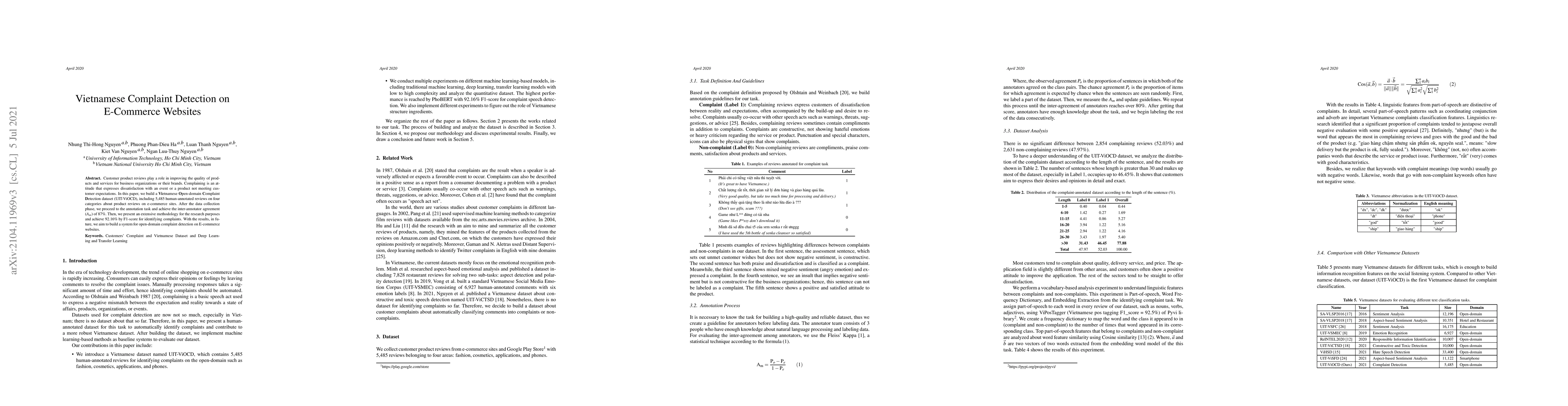 This paper develops a Vietnamese complaint detection dataset (UIT-ViOCD) with 5,485 annotated reviews, achieving 87% inter-annotator agreement. An effective methodology is presented, resulting in a 92.16% F1-score for complaint identification, aiming to build a system for open-domain complaint detection on e-commerce platforms.