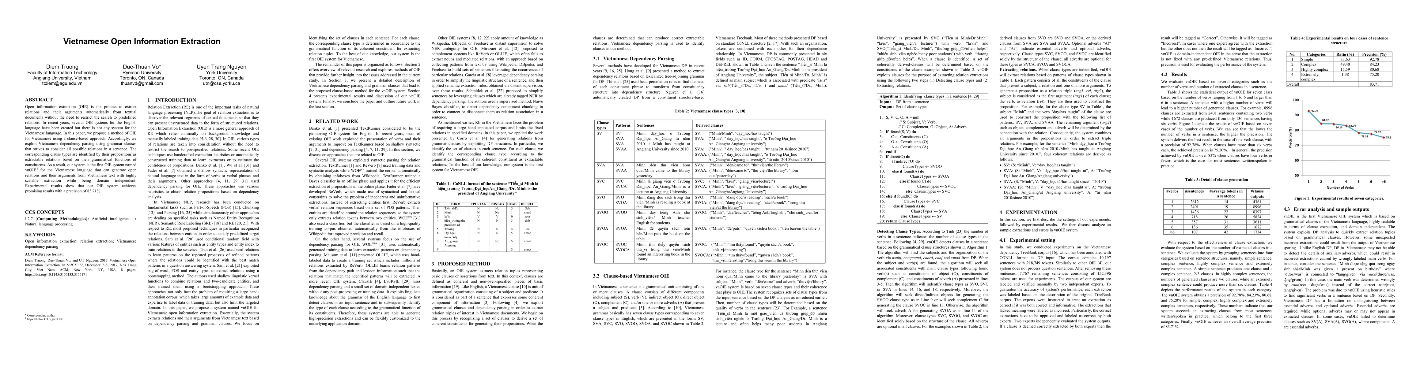 This paper proposes vnOIE, the first Vietnamese Open Information Extraction system, utilizing a clause-based approach with Vietnamese dependency parsing to identify and extract relations and arguments from text without predefined relation constraints. Experimental results demonstrate its effectiveness with a precision of 83.71%.