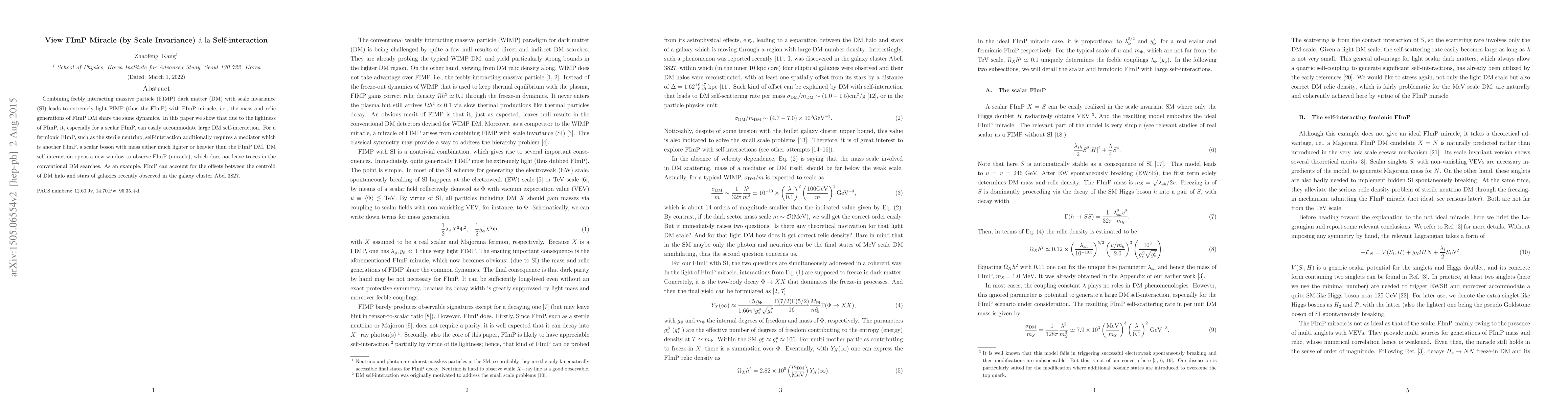Combining feebly interacting massive particle (FIMP) dark matter (DM) with scale invariance (SI) leads to extremely light FIMP (thus the FImP) with FImP miracle, i.e., the mass and relic generations of FImP DM share the same dynamics. In this paper we show that due to the lightness of FImP, it, especially for a scalar FImP, can easily accommodate large DM self-interaction. For a fermionic FImP, such as the sterile neutrino, self-interaction additionally requires a mediator which is another FImP, a scalar boson with mass either much lighter or heavier than the FImP DM. DM self-interaction opens a new window to observe FImP (miracle), which does not leave traces in the conventional DM searches. As an example, FImP can account for the offsets between the centroid of DM halo and stars of galaxies recently observed in the galaxy cluster Abel 3827.