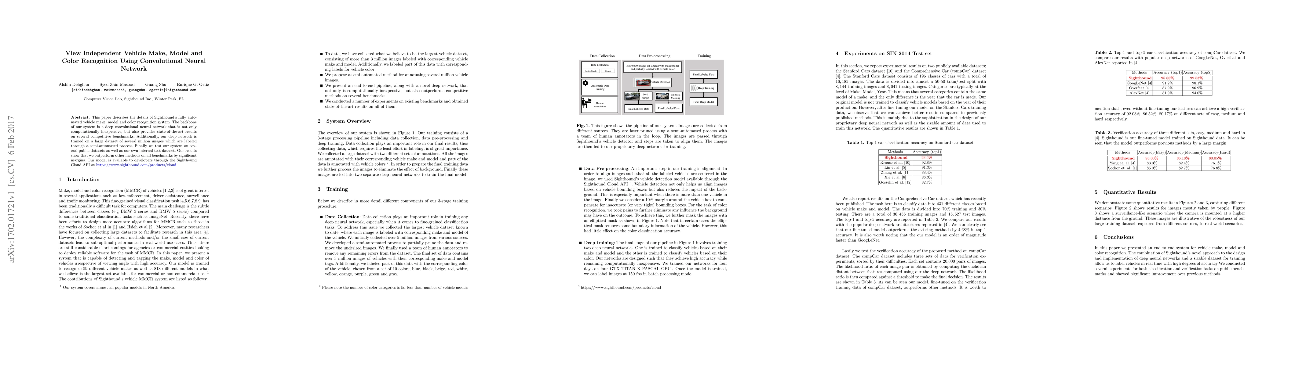 This paper presents Sighthound's vehicle make, model, and color recognition system powered by a deep convolutional neural network, achieving state-of-the-art results on multiple benchmarks. The model, trained on millions of images, outperforms other methods significantly and is accessible via the Sighthound Cloud API.
