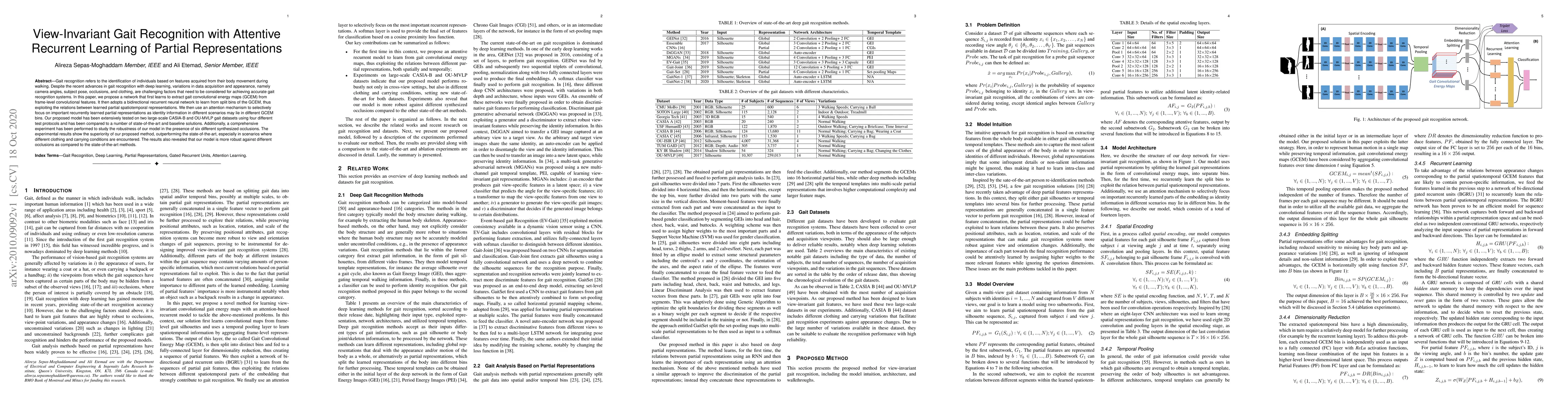This paper proposes a view-invariant gait recognition system using attentive recurrent learning of partial convolutional energy maps, achieving superior performance over state-of-the-art methods, especially under varying clothing and occlusion conditions. The model effectively handles variations in gait data through partial representation learning and attention mechanisms.