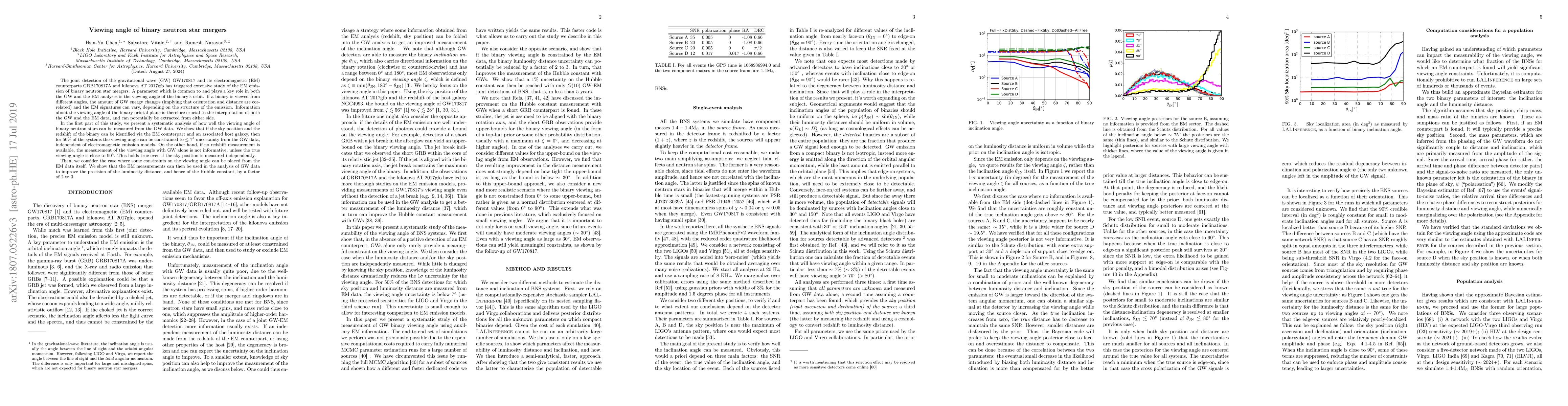 This paper investigates the measurement of viewing angles in binary neutron star mergers using gravitational wave (GW) and electromagnetic (EM) data. It finds that GW data alone cannot accurately determine viewing angles without redshift information, but combining GW and EM data can significantly improve the precision of luminosity distance measurements.