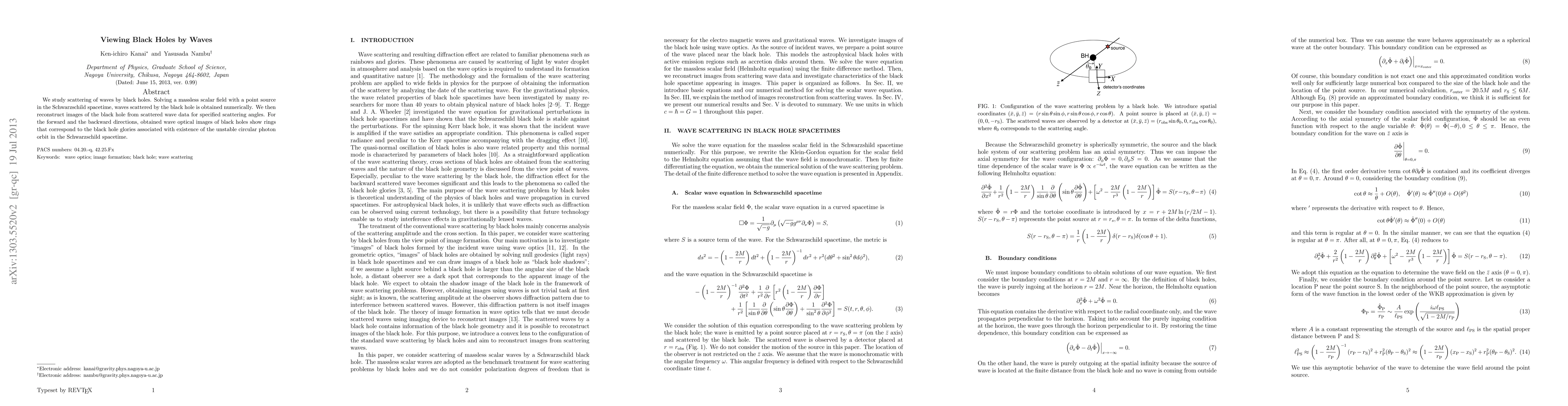 We study scattering of waves by black holes. Solving a massless scalar field with a point source in the Schwarzschild spacetime, waves scattered by the black hole is obtained numerically. We then reconstruct images of the black hole from scattered wave data for specified scattering angles. For the forward and the backward directions, obtained wave optical images of black holes show rings that correspond to the black hole glories associated with existence of the unstable circular photon orbit in the Schwarzschild spacetime.