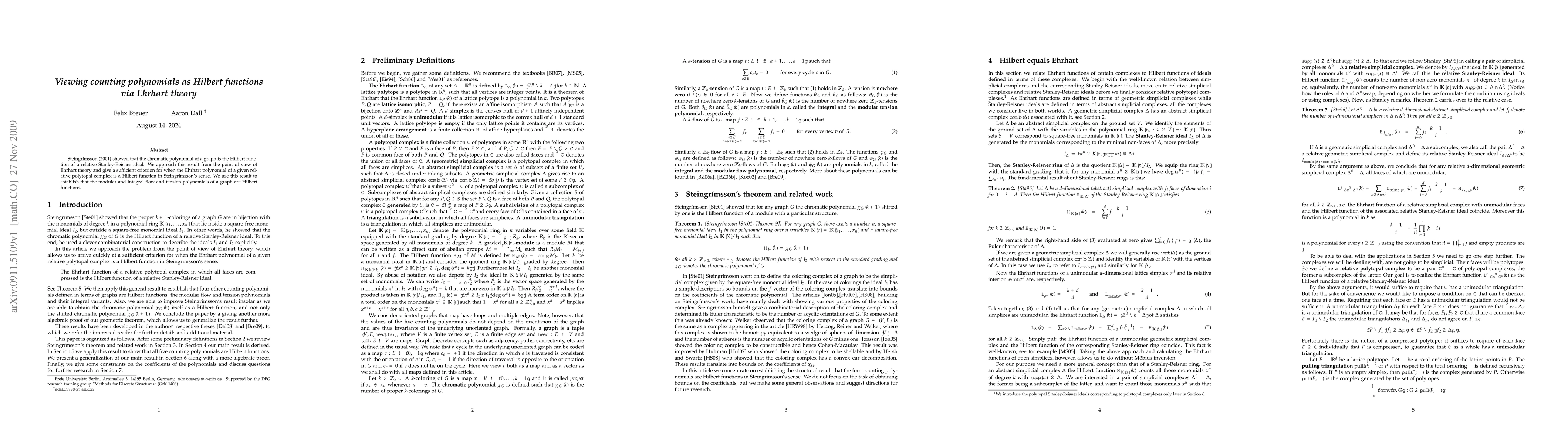 Steingrimsson (2001) showed that the chromatic polynomial of a graph is the Hilbert function of a relative Stanley-Reisner ideal. We approach this result from the point of view of Ehrhart theory and give a sufficient criterion for when the Ehrhart polynomial of a given relative polytopal complex is a Hilbert function in Steingrimsson's sense. We use this result to establish that the modular and integral flow and tension polynomials of a graph are Hilbert functions.
