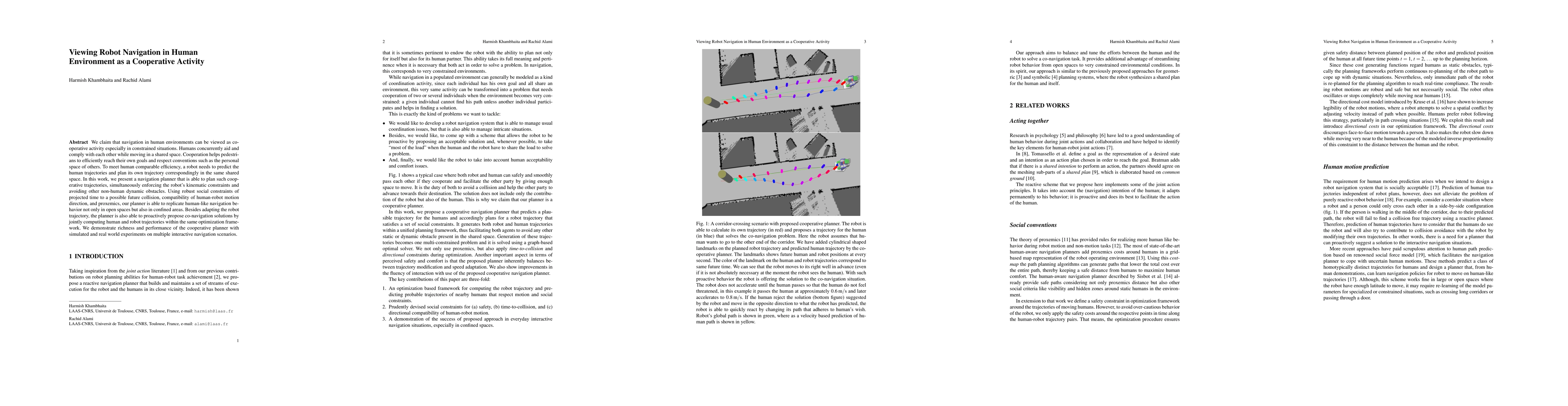 This paper proposes a navigation planner for robots that views navigation in human environments as a cooperative activity, aiming to replicate human-like navigation behavior by predicting human trajectories and planning robot paths accordingly. The planner optimizes the robot's path while considering social constraints, ensuring efficient navigation in both open and confined spaces.