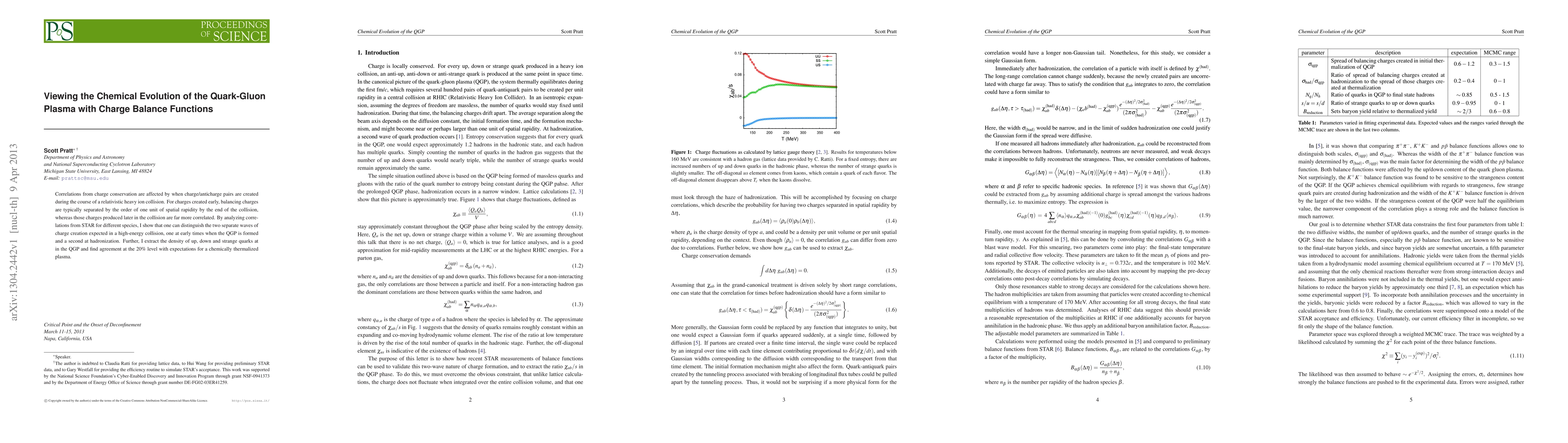 Correlations from charge conservation are affected by when charge/anticharge pairs are created during the course of a relativistic heavy ion collision. For charges created early, balancing charges are typically separated by the order of one unit of spatial rapidity by the end of the collision, whereas those charges produced later in the collision are far more correlated. By analyzing correlations from STAR for different species, I show that one can distinguish the two separate waves of charge creation expected in a high-energy collision, one at early times when the QGP is formed and a second at hadronization. Further, I extract the density of up, down and strange quarks at in the QGP and find agreement at the 20% level with expectations for a chemically thermalized plasma.