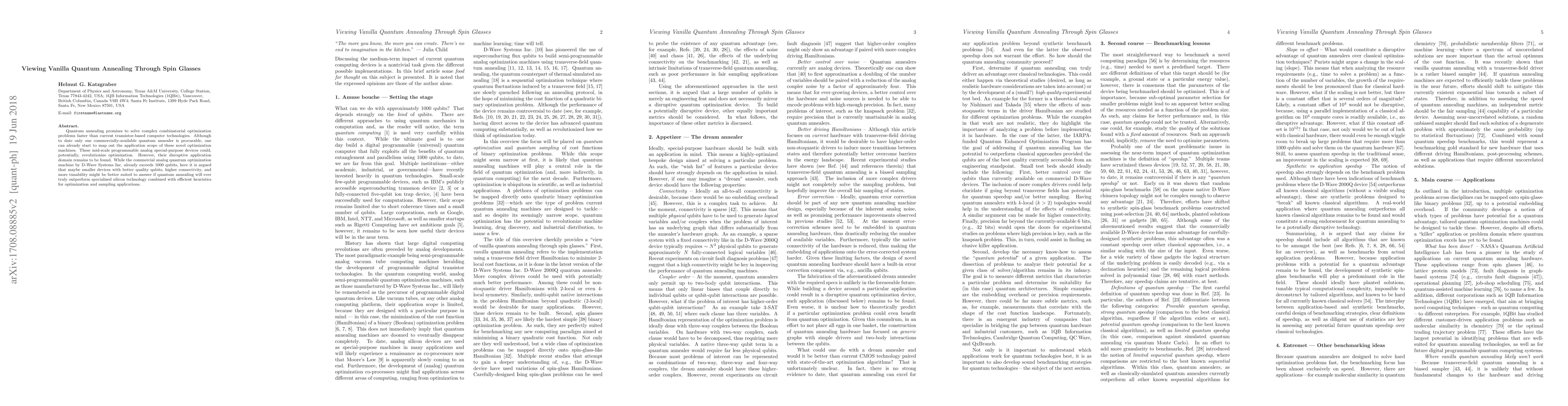 Quantum annealing promises to solve complex combinatorial optimization problems faster than current transistor-based computer technologies. Although to date only one commercially-available quantum annealer is procurable, one can already start to map out the application scope of these novel optimization machines. These mid-scale programmable analog special-purpose devices could, potentially, revolutionize optimization. However, their disruptive application domain remains to be found. While the commercial analog quantum optimization machine by D-Wave Systems Inc. already exceeds 1000 qubits, here it is argued that maybe smaller devices with better quality qubits, higher connectivity, and more tunability might be better suited to answer if quantum annealing will ever truly outperform specialized silicon technology combined with efficient heuristics for optimization and sampling applications.