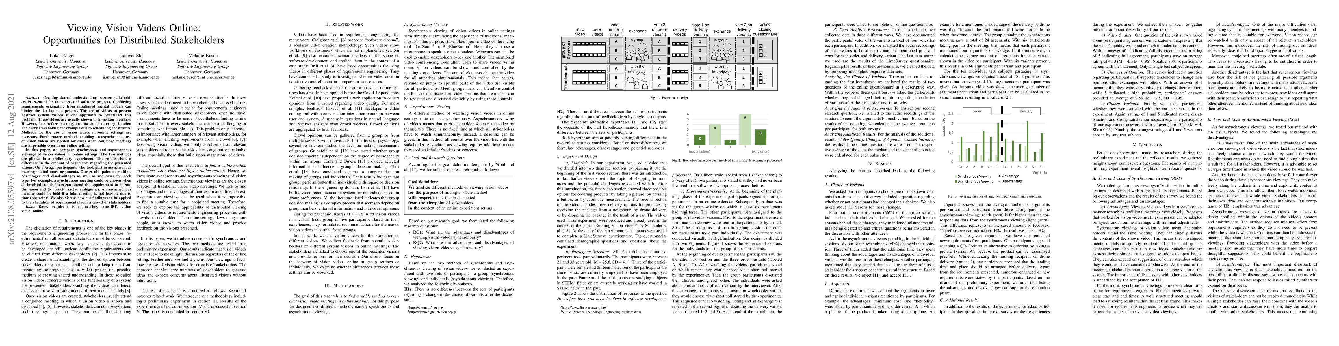 This paper explores the use of vision videos in online settings to foster shared understanding among distributed stakeholders in software projects. It compares synchronous and asynchronous viewing methods, finding that asynchronous viewings generate more arguments, highlighting the benefits and drawbacks of each approach for different scenarios.