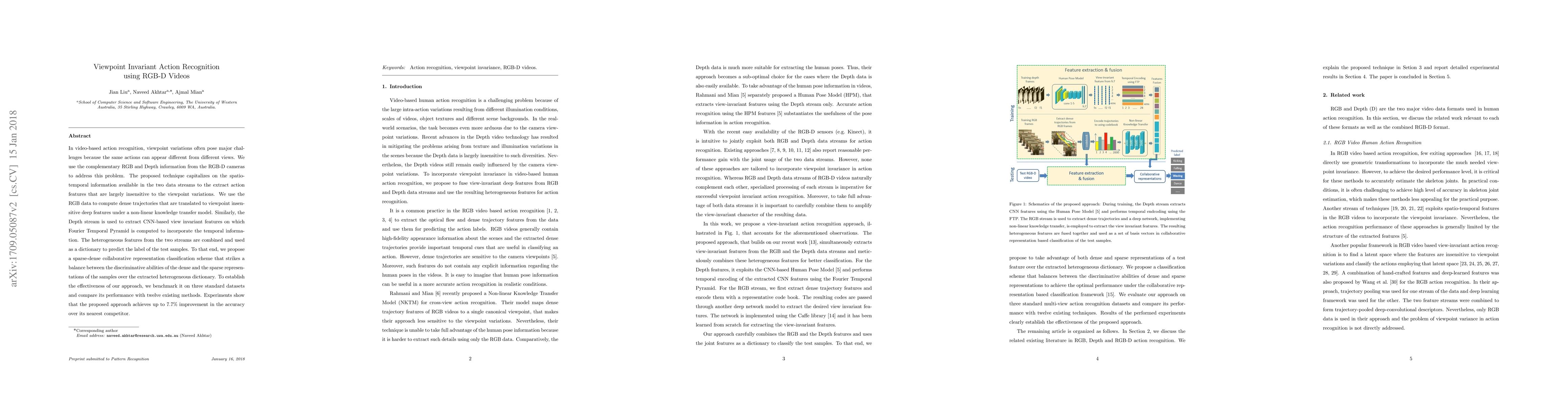 A new method for recognizing actions in videos from different viewpoints uses RGB-D cameras to extract spatio-temporal features that are insensitive to viewpoint variations. This allows for more accurate action recognition across varying views.