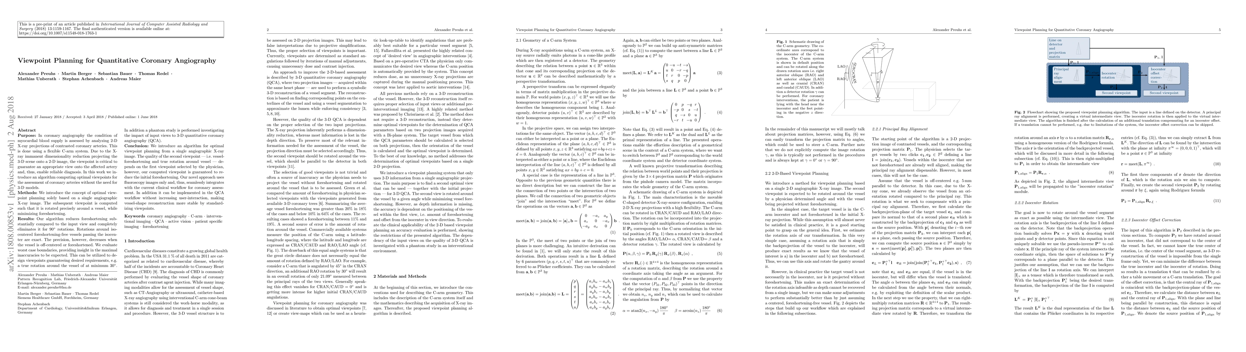 In coronary angiography the condition of myocardial blood supply is assessed by analyzing 2-D X-ray projections of contrasted coronary arteries. This is done using a flexible C-arm system. Due to the X-ray immanent dimensionality reduction projecting the 3-D scene onto a 2-D image, the viewpoint is critical to guarantee an appropriate view onto the affected artery and, thus, enable reliable diagnosis. In this work we introduce an algorithm computing optimal viewpoints for the assessment of coronary arteries without the need for 3-D models. We introduce the concept of optimal viewpoint planning solely based on a single angiographic X-ray image. The subsequent viewpoint is computed such that it is rotated precisely around a vessel, while minimizing foreshortening. Our algorithm reduces foreshortening substantially compared to the input view and completely eliminates it for 90 degree rotations. Rotations around iso-centered foreshortening-free vessels passing the isocenter are exact. The precision, however, decreases when the vessel is off-centered or foreshortened. We evaluate worst case boundaries, providing insight in the maximal inaccuracies to be expected. This can be utilized to design viewpoints guaranteeing desired requirements, e.g. a true rotation around the vessel of at minimum 30 degree.