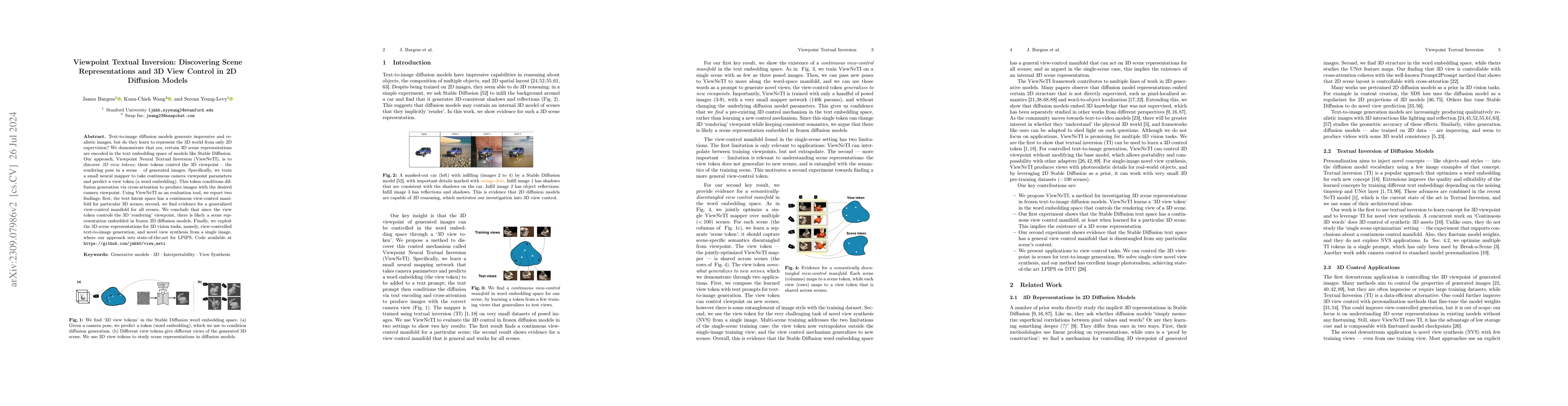 This paper introduces Viewpoint Neural Textual Inversion (ViewNeTI), a method that leverages pretrained 2D diffusion models to synthesize novel views from sparse input data. By training a neural mapper to predict text encoder latents based on camera viewpoint parameters, ViewNeTI enables control over the 3D viewpoint of objects in generated images, achieving high-quality single-view novel view synthesis with good semantic details and photorealism.