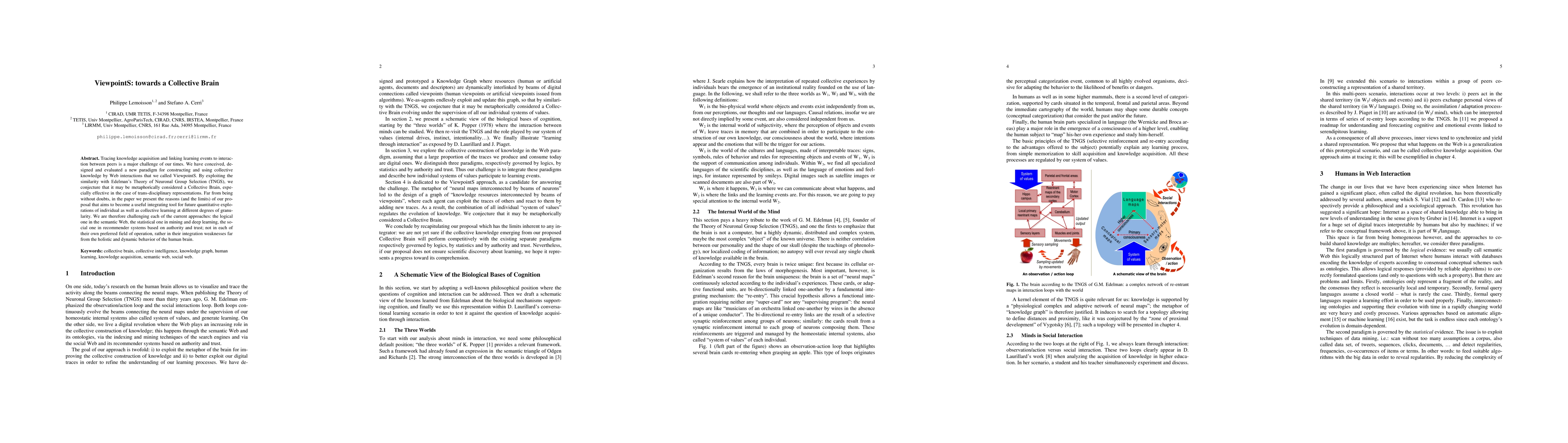 The paper introduces ViewpointS, a new paradigm for constructing collective knowledge through web interactions, drawing parallels to Edelman's Theory of Neuronal Group Selection. It proposes ViewpointS as a metaphorical Collective Brain, aiming to address integration weaknesses in current approaches like semantic web, deep learning, and recommender systems.
