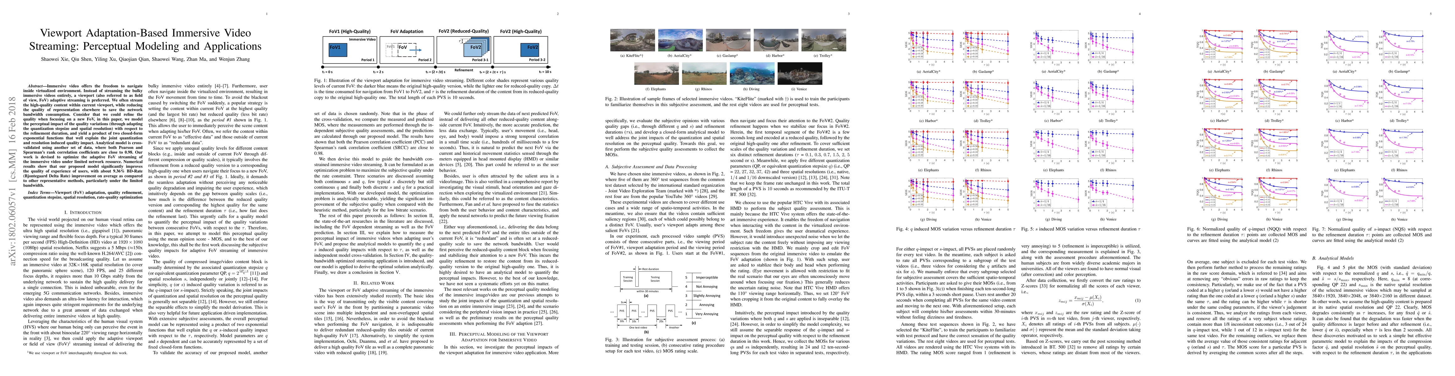 Immersive video offers the freedom to navigate inside virtualized environment. Instead of streaming the bulky immersive videos entirely, a viewport (also referred to as field of view, FoV) adaptive streaming is preferred. We often stream the high-quality content within current viewport, while reducing the quality of representation elsewhere to save the network bandwidth consumption. Consider that we could refine the quality when focusing on a new FoV, in this paper, we model the perceptual impact of the quality variations (through adapting the quantization stepsize and spatial resolution) with respect to the refinement duration, and yield a product of two closed-form exponential functions that well explain the joint quantization and resolution induced quality impact. Analytical model is cross-validated using another set of data, where both Pearson and Spearman's rank correlation coefficients are close to 0.98. Our work is devised to optimize the adaptive FoV streaming of the immersive video under limited network resource. Numerical results show that our proposed model significantly improves the quality of experience of users, with about 9.36\% BD-Rate (Bjontegaard Delta Rate) improvement on average as compared to other representative methods, particularly under the limited bandwidth.