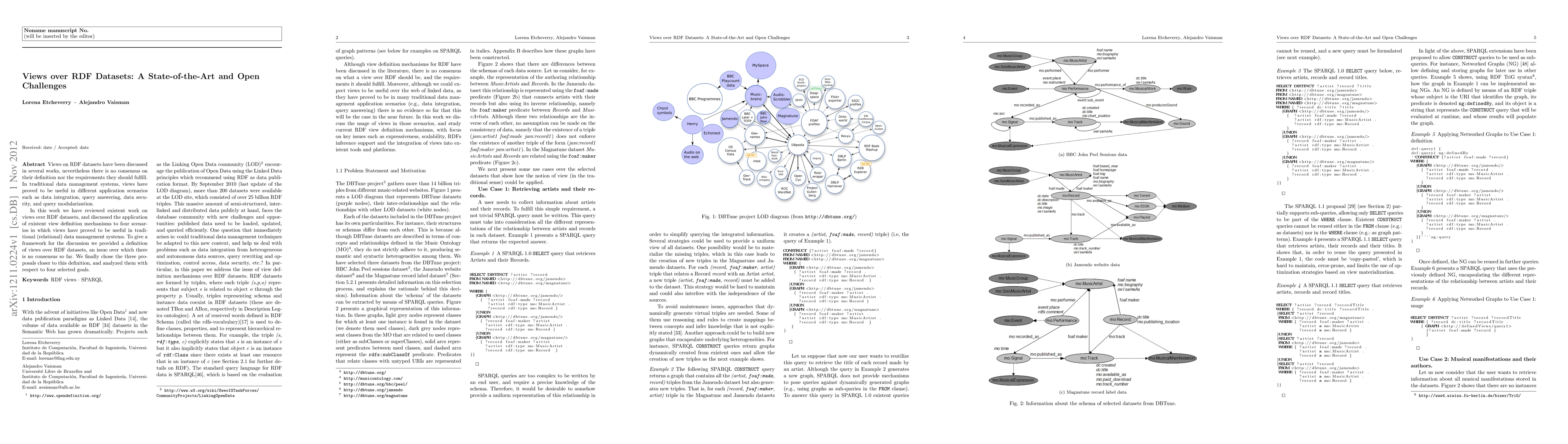 Views on RDF datasets have been discussed in several works, nevertheless there is no consensus on their definition nor the requirements they should fulfill. In traditional data management systems, views have proved to be useful in different application scenarios such as data integration, query answering, data security, and query modularization. In this work we have reviewed existent work on views over RDF datasets, and discussed the application of existent view definition mechanisms to four scenarios in which views have proved to be useful in traditional (relational) data management systems. To give a framework for the discussion we provided a definition of views over RDF datasets, an issue over which there is no consensus so far. We finally chose the three proposals closer to this definition, and analyzed them with respect to four selected goals.