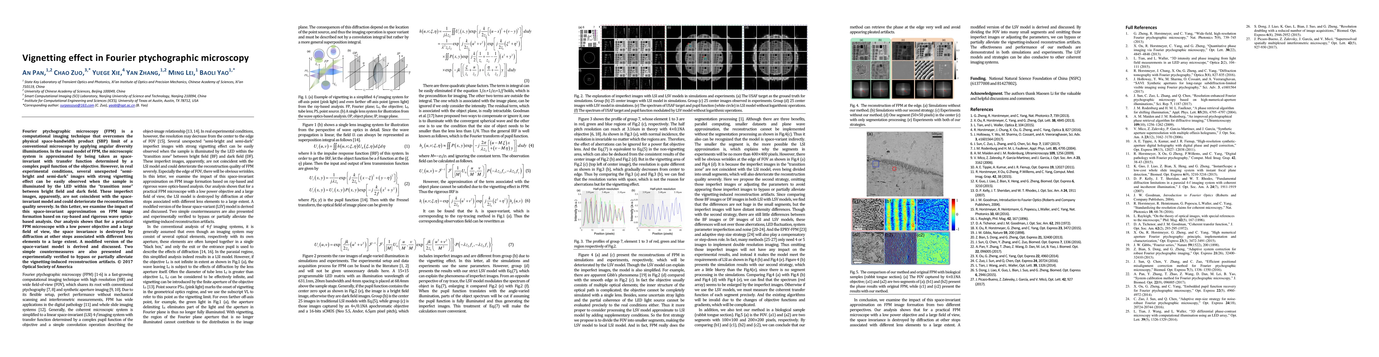 This paper investigates the vignetting effect in Fourier ptychographic microscopy (FPM) caused by deviations from the space-invariant model, proposing a modified space-variant model and presenting countermeasures to mitigate vignetting-induced reconstruction artifacts. Experimental validation demonstrates the effectiveness of the proposed solutions.