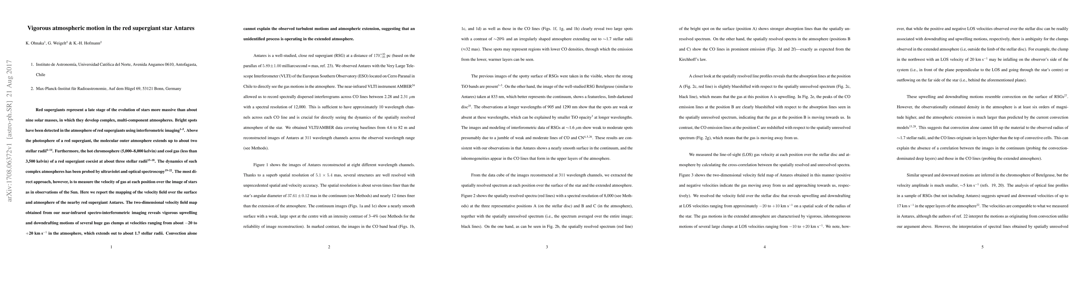 This paper reports the mapping of the velocity field over the surface and atmosphere of the red supergiant star Antares, revealing vigorous upwelling and downdrafting motions of gas clumps. An unidentified process beyond convection appears to drive the observed turbulent motions in the star's extended atmosphere.