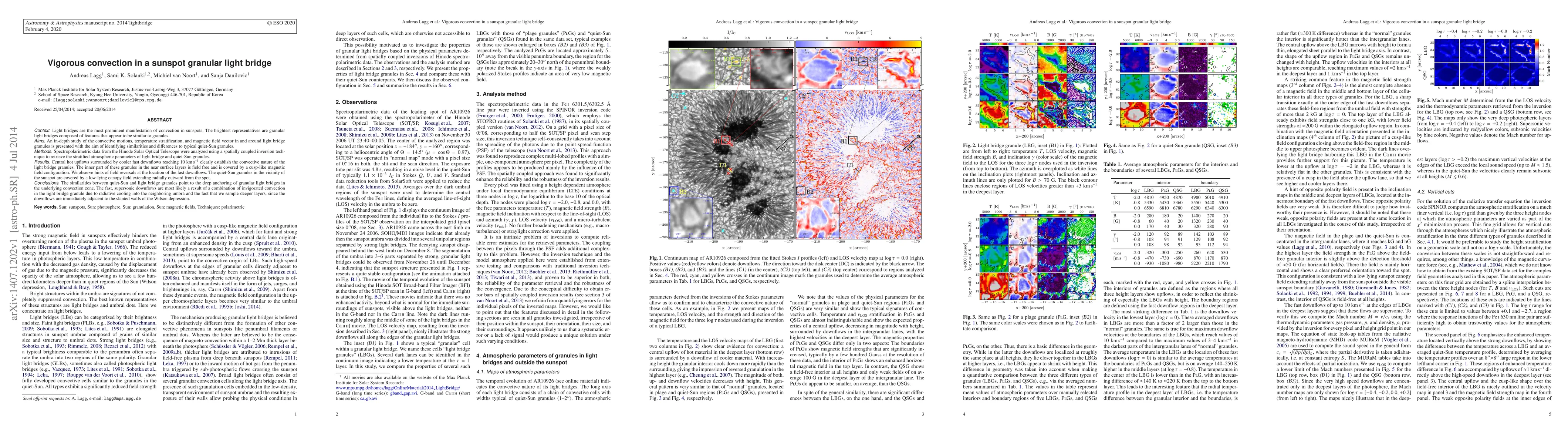 This paper investigates the vigorous convection in granular light bridges within sunspots, revealing central hot upflows and fast downflows reaching 10 km/s, alongside a cusp-like magnetic field configuration. Comparisons with quiet-Sun granules show similarities, suggesting deep convection roots, while the fast downflows likely result from intensified convection and deeper sampling.