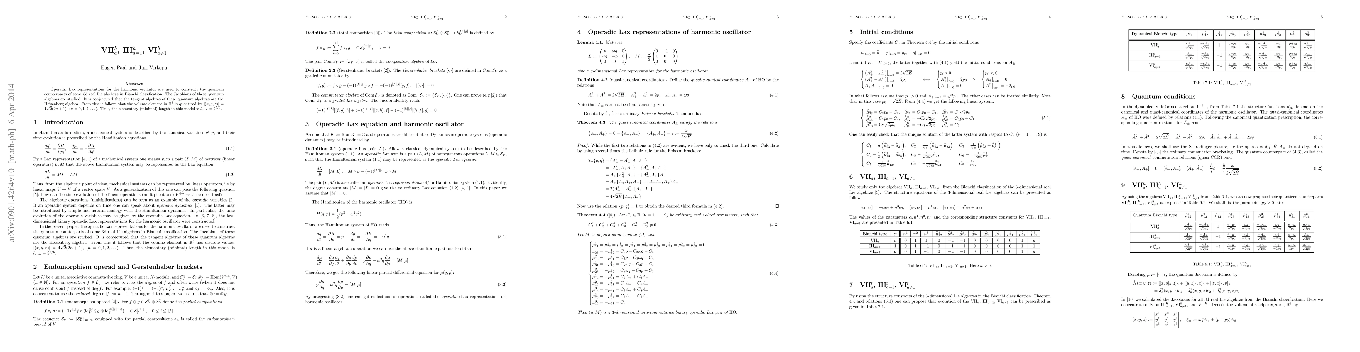 Operadic Lax representations for the harmonic oscillator are used to construct the quantum counterparts of some 3d real Lie algebras in Bianchi classification. The Jacobians of these quantum algebras are studied. It is conjectured that the tangent algebras of these quantum algebras are the Heisenberg algebra. From this it follows that the volume element in $\mathbb{R}^{3}$ is quantized by $|(x,y,z)|=4\sqrt{2}(2n+1)$, ($n=0,1,2,\dots$). Thus, the elementary (minimal) length in this model is $l_{min}=2^{5/6}$.