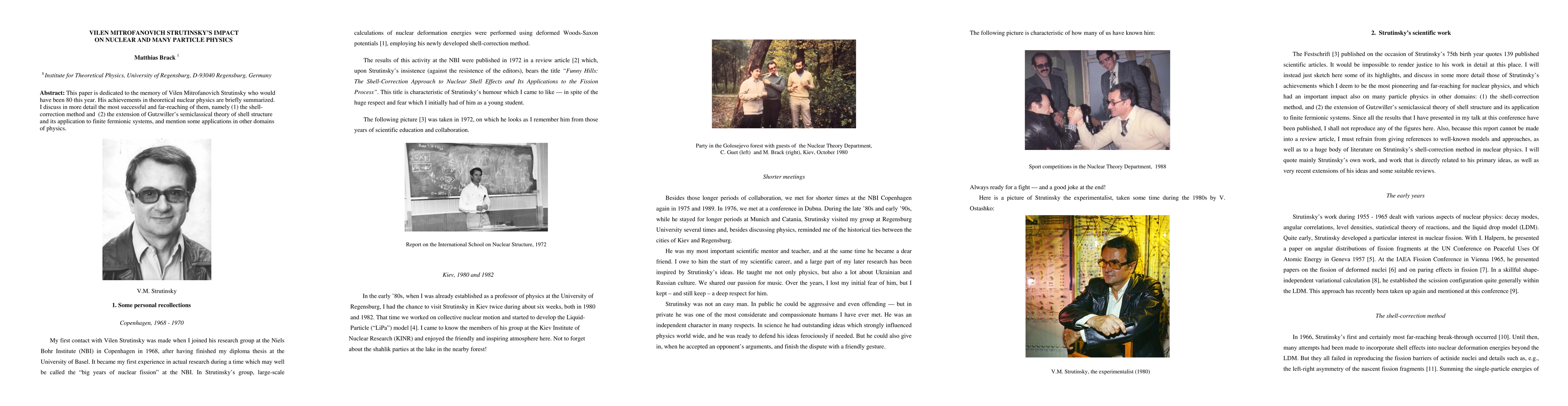 This paper is dedicated to the memory of Vilen Mitrofanovich Strutinsky who would have been 80 this year. His achievements in theoretical nuclear physics are briefly summarized. I discuss in more detail the most successful and far-reaching of them, namely (1) the shell-correction method and (2) the extension of Gutzwiller's semiclassical theory of shell structure and its application to finite fermionic systems, and mention some applications in other domains of physics.