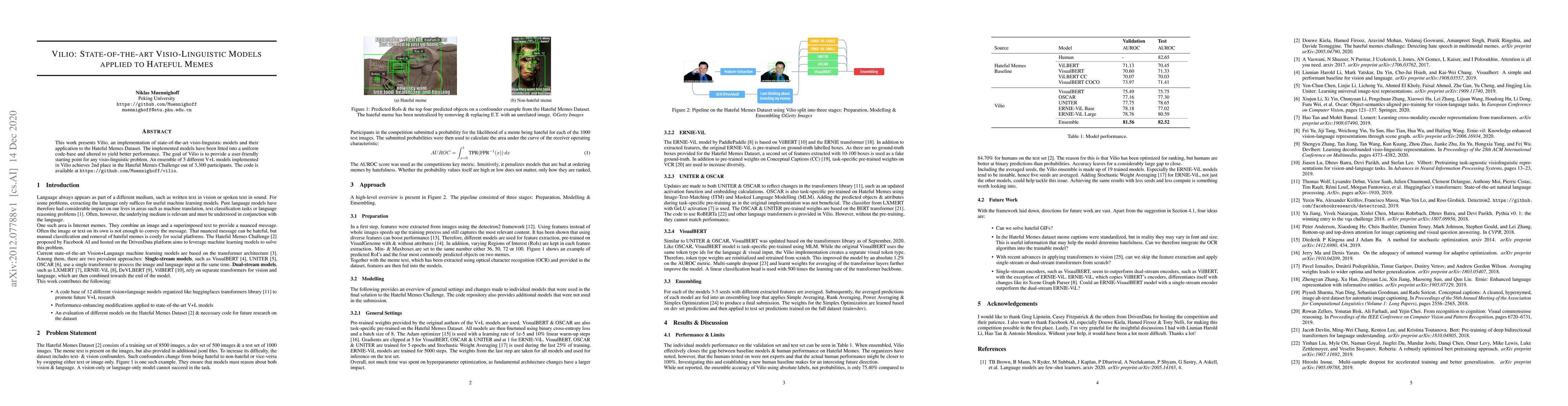 This paper introduces Vilio, an advanced visio-linguistic model ensemble applied to the Hateful Memes Dataset, achieving 2nd place in the Hateful Memes Challenge. The code is openly available to facilitate further research in visio-linguistics.