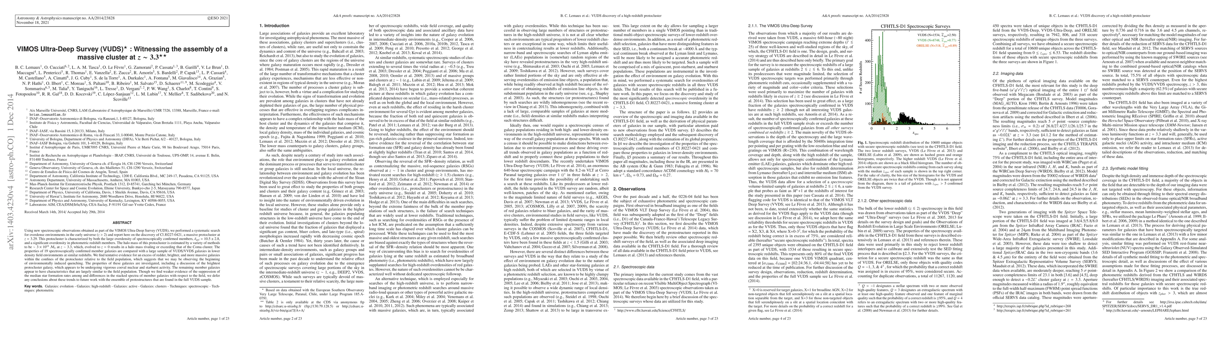 The VIMOS Ultra-Deep Survey (VUDS) discovered Cl J0227-0421, a massive protocluster at $z=3.29$, characterized by a large overdensity of galaxies and a halo mass of $3\times10^{14}$ $\mathcal{M}_{\odot}$ at $z\sim3.3$. Spectroscopically confirmed member galaxies show evidence of environmentally-induced quenching and enhanced red, bright, and massive galaxies.