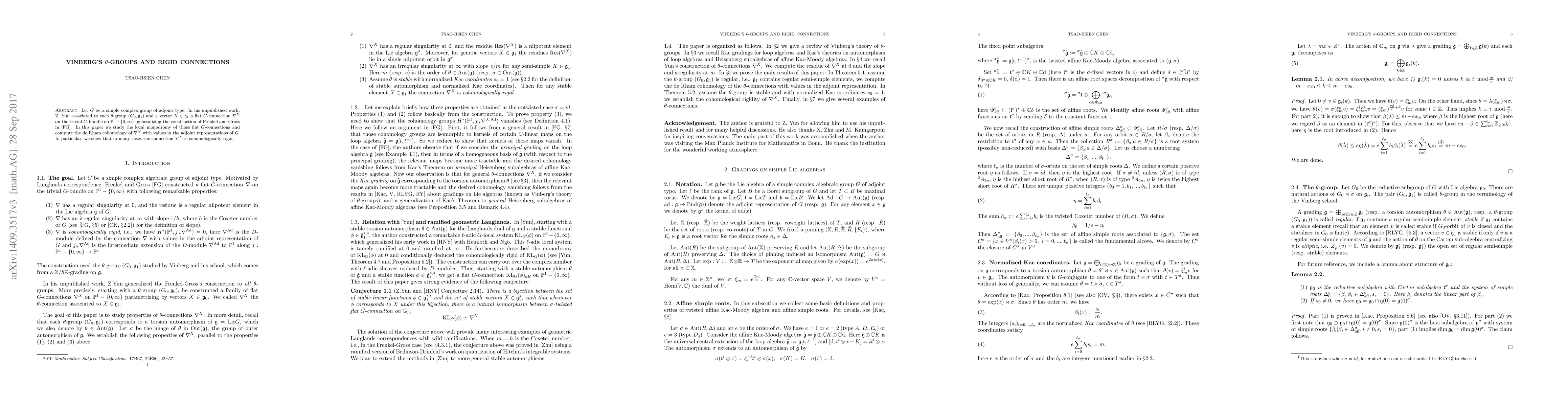 Let $G$ be a simple complex group of adjoint type. In his unpublished work, Z. Yun associated to each $\theta$-group $(G_0, \mathfrak g_1)$ and a vector $X\in\mathfrak g_1$ a flat $G$-connection $\nabla ^X$ on $\mathbb P^1-\{0,\infty\}$, generalizing the construction of Frenkel and Gross in [FG]. In this paper we study the local monodromy of those flat $G$-connections and compute the de Rham cohomology of $\nabla^X$ with values in the adjoint representations of $G$. In particular, we show that in many cases the connection $\nabla^X$ is cohomologically rigid.