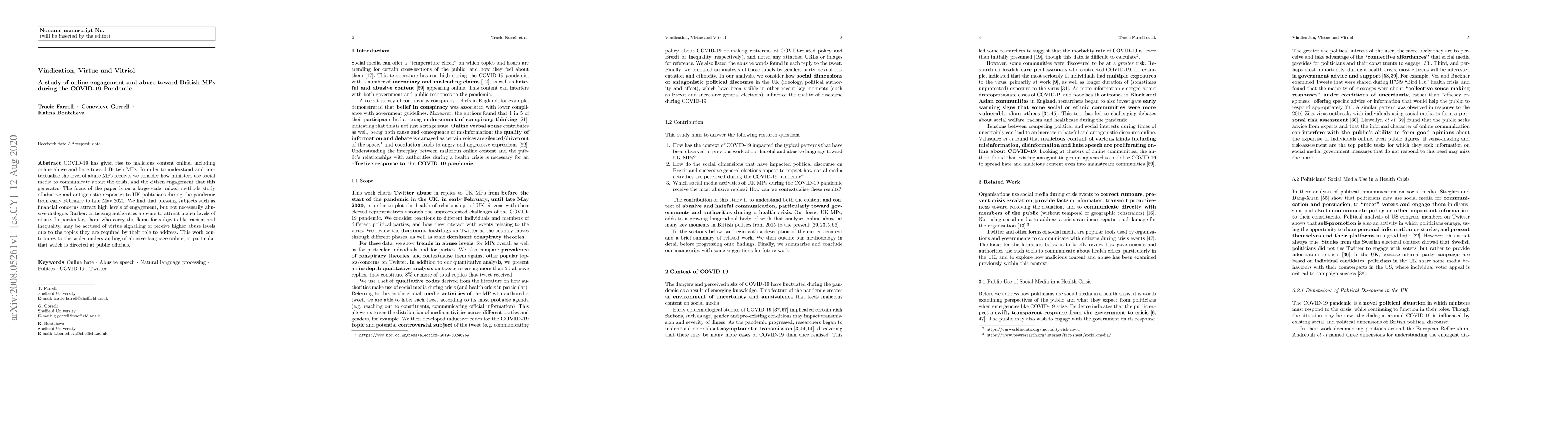 This study examines the online abuse and engagement directed at British MPs during the COVID-19 pandemic, finding that criticism of authorities, especially on sensitive topics like racism and inequality, attracts higher levels of abusive responses. The research highlights the complex relationship between public officials' communication and the antagonistic online discourse they generate.