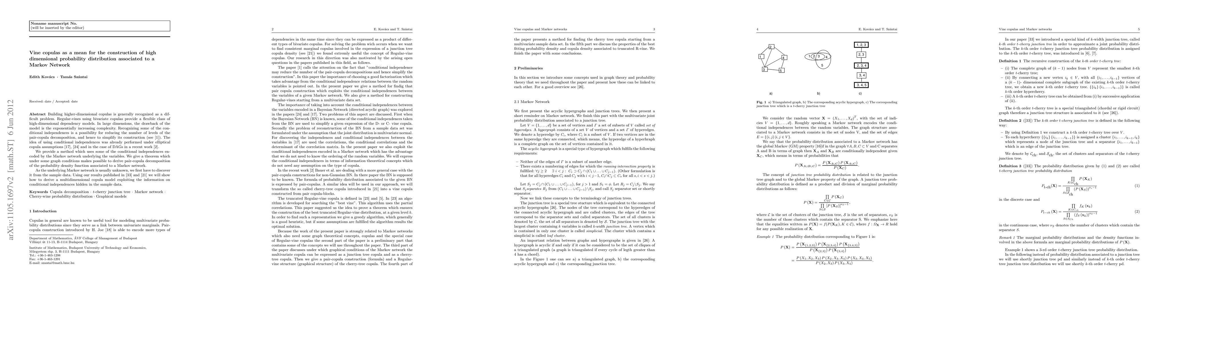 Building higher-dimensional copulas is generally recognized as a difficult problem. Regular-vines using bivariate copulas provide a flexible class of high-dimensional dependency models. In large dimensions, the drawback of the model is the exponentially increasing complexity. Recognizing some of the conditional independences is a possibility for reducing the number of levels of the pair-copula decomposition, and hence to simplify its construction Aas et al (2009). The idea of using conditional independences was already performed under elliptical copula assumptions Hanea, Kurowicka and Cooke (2006), Kurowicka and Cooke (2002) and in the case of DAGs in a recent work Bauer, Czado and Klein (2011). We provide a method which uses some of the conditional independences encoded by the Markov network underlying the variables. We give a theorem which under some graph conditions makes possible to derive pair-copula decomposition of the probability density function associated to a Markov network. As the underlying Markov network is usually unknown, we first have to discover it from the sample data. Using our results published in Szantai and Kovacs (2008) and Kovacs and Szantai (2010a) we will show how to derive a multidimensional copula model exploiting the information on conditional independences hidden in the sample data.