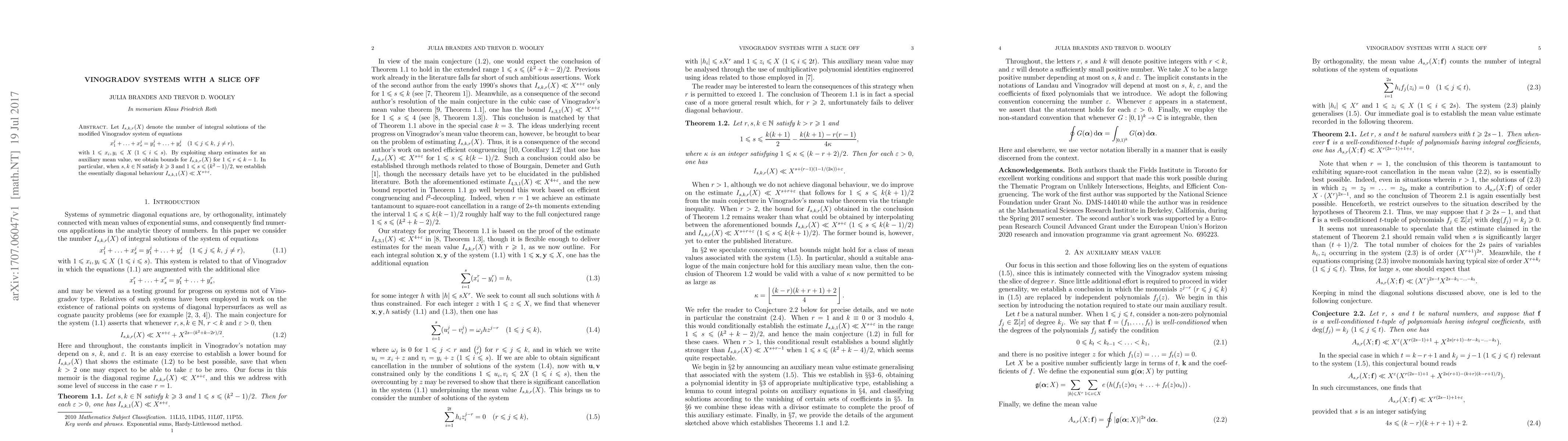 Let $I_{s,k,r}(X)$ denote the number of integral solutions of the modified Vinogradov system of equations $$x_1^j+\ldots +x_s^j=y_1^j+\ldots +y_s^j\quad (\text{$1\le j\le k$, $j\ne r$}),$$ with $1\le x_i,y_i\le X$ $(1\le i\le s)$. By exploiting sharp estimates for an auxiliary mean value, we obtain bounds for $I_{s,k,r}(X)$ for $1\le r\le k-1$. In particular, when $s,k\in \mathbb N$ satisfy $k\ge 3$ and $1\le s\le (k^2-1)/2$, we establish the essentially diagonal behaviour $I_{s,k,1}(X)\ll X^{s+\epsilon}$.