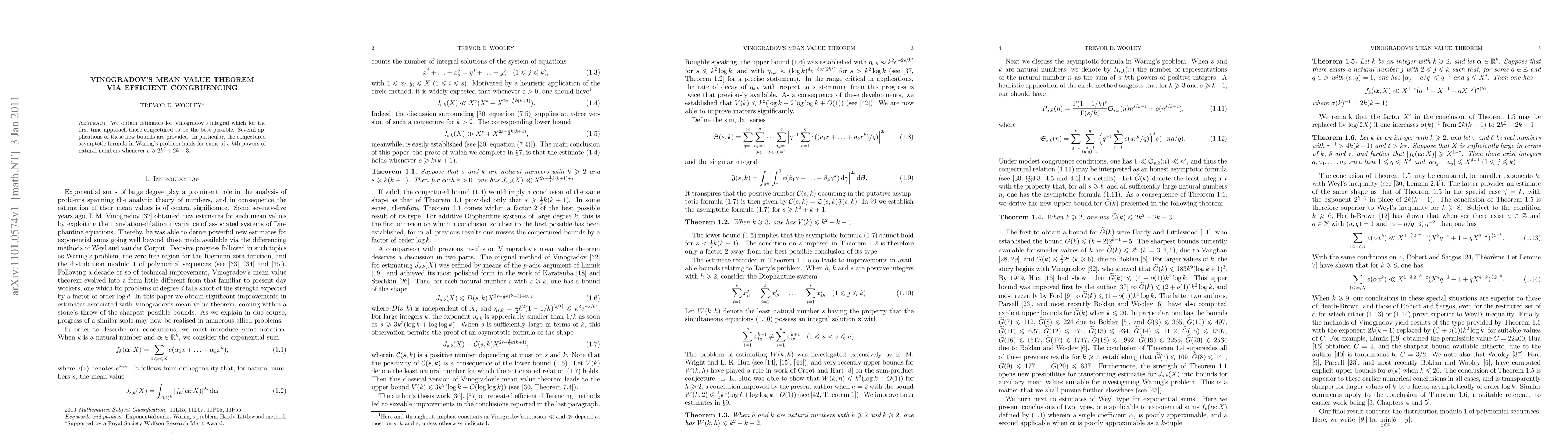 Summary: This paper presents improved estimates for Vinogradov's integral, approaching the best possible bounds, and applies these results to confirm the asymptotic formula in Waring's problem for sums of s kth powers when s ≥ 2k^2+2k-3.