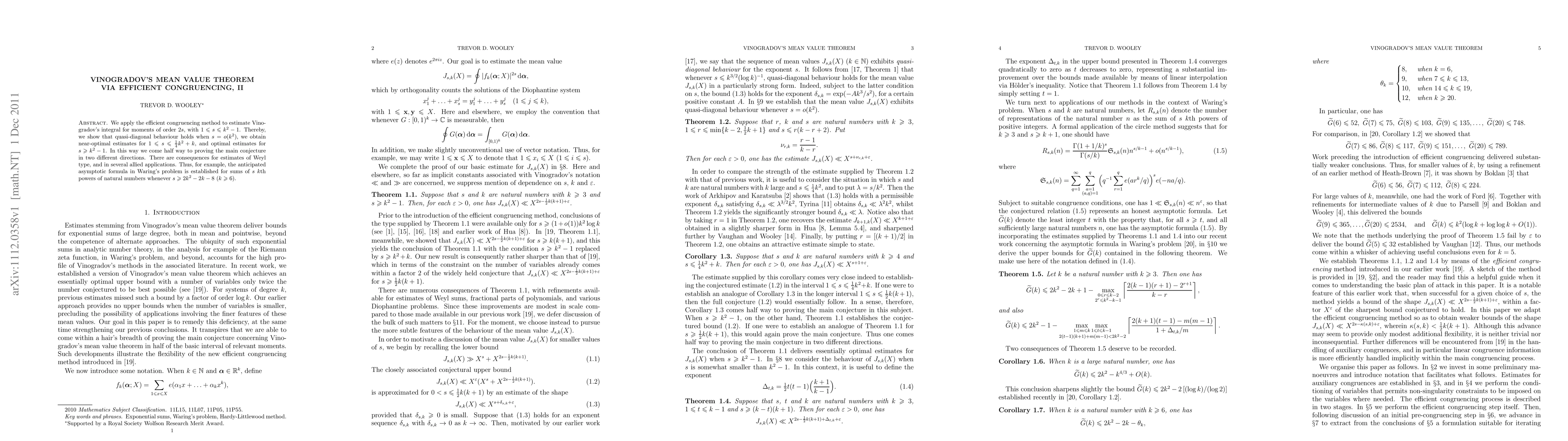This paper utilizes the efficient congruencing method to derive near-optimal and optimal estimates for Vinogradov's integral, contributing to the proof of the main conjecture in two directions. It also establishes an asymptotic formula in Waring's problem for sums of kth powers of natural numbers.