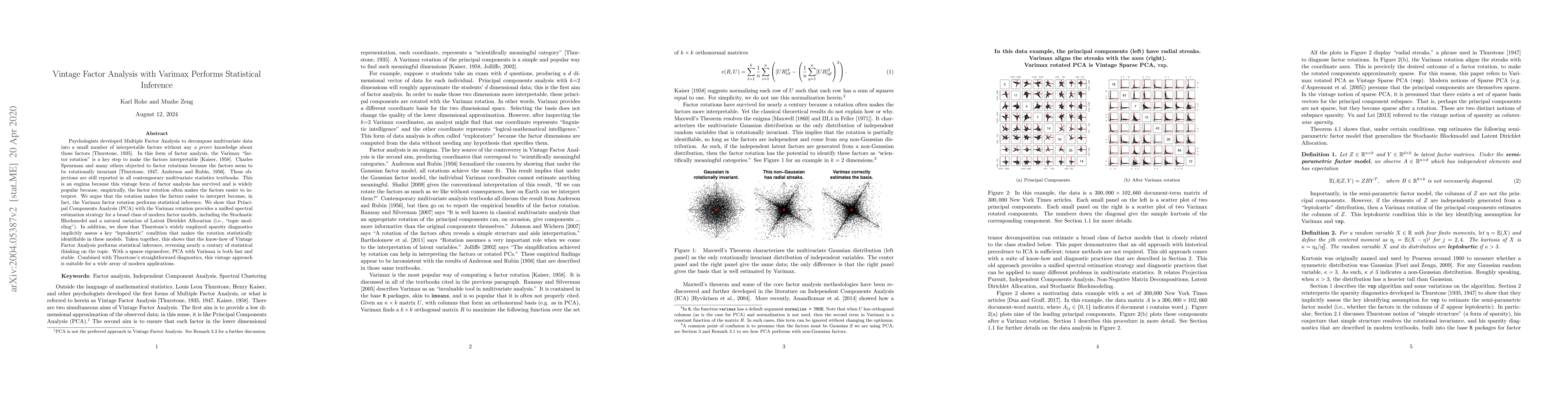 Psychologists developed Multiple Factor Analysis to decompose multivariate data into a small number of interpretable factors without any a priori knowledge about those factors. In this form of factor analysis, the Varimax "factor rotation" is a key step to make the factors interpretable. Charles Spearman and many others objected to factor rotations because the factors seem to be rotationally invariant. These objections are still reported in all contemporary multivariate statistics textbooks. This is an engima because this vintage form of factor analysis has survived and is widely popular because, empirically, the factor rotation often makes the factors easier to interpret. We argue that the rotation makes the factors easier to interpret because, in fact, the Varimax factor rotation performs statistical inference. We show that Principal Components Analysis (PCA) with the Varimax rotation provides a unified spectral estimation strategy for a broad class of modern factor models, including the Stochastic Blockmodel and a natural variation of Latent Dirichlet Allocation (i.e., "topic modeling"). In addition, we show that Thurstone's widely employed sparsity diagnostics implicitly assess a key "leptokurtic" condition that makes the rotation statistically identifiable in these models. Taken together, this shows that the know-how of Vintage Factor Analysis performs statistical inference, reversing nearly a century of statistical thinking on the topic. With a sparse eigensolver, PCA with Varimax is both fast and stable. Combined with Thurstone's straightforward diagnostics, this vintage approach is suitable for a wide array of modern applications.