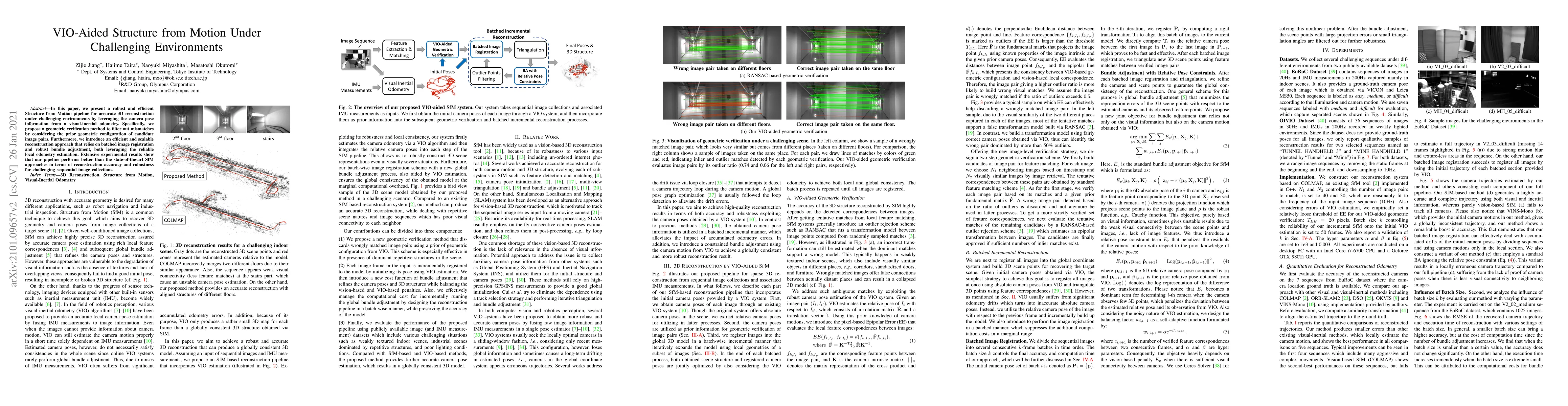 In this paper, we present a robust and efficient Structure from Motion pipeline for accurate 3D reconstruction under challenging environments by leveraging the camera pose information from a visual-inertial odometry. Specifically, we propose a geometric verification method to filter out mismatches by considering the prior geometric configuration of candidate image pairs. Furthermore, we introduce an efficient and scalable reconstruction approach that relies on batched image registration and robust bundle adjustment, both leveraging the reliable local odometry estimation. Extensive experimental results show that our pipeline performs better than the state-of-the-art SfM approaches in terms of reconstruction accuracy and robustness for challenging sequential image collections.