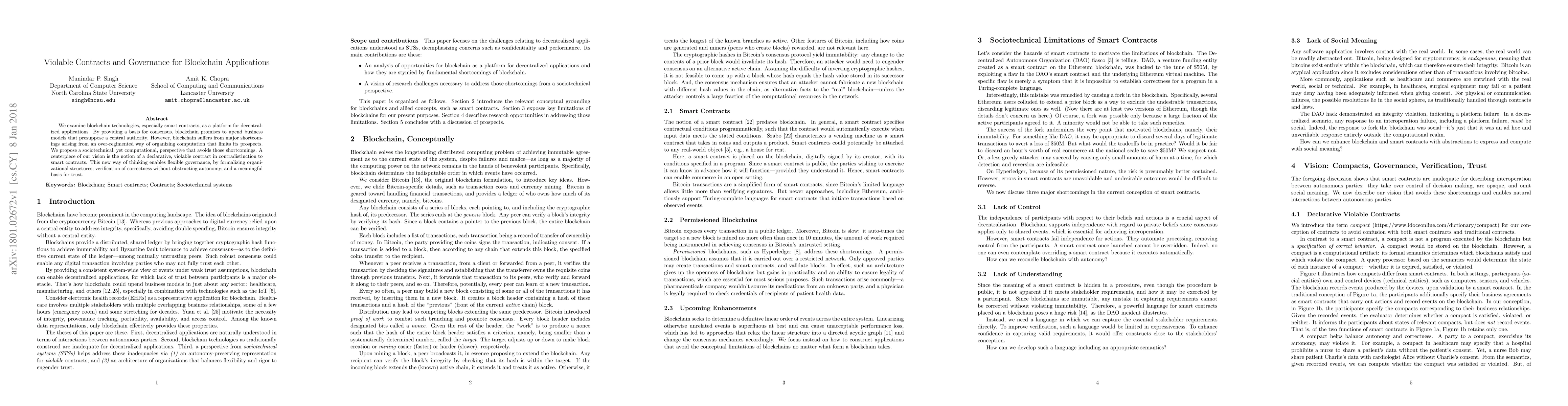 We examine blockchain technologies, especially smart contracts, as a platform for decentralized applications. By providing a basis for consensus, blockchain promises to upend business models that presuppose a central authority. However, blockchain suffers from major shortcomings arising from an over-regimented way of organizing computation that limits its prospects. We propose a sociotechnical, yet computational, perspective that avoids those shortcomings. A centerpiece of our vision is the notion of a declarative, violable contract in contradistinction to smart contracts. This new way of thinking enables flexible governance, by formalizing organizational structures; verification of correctness without obstructing autonomy; and a meaningful basis for trust.