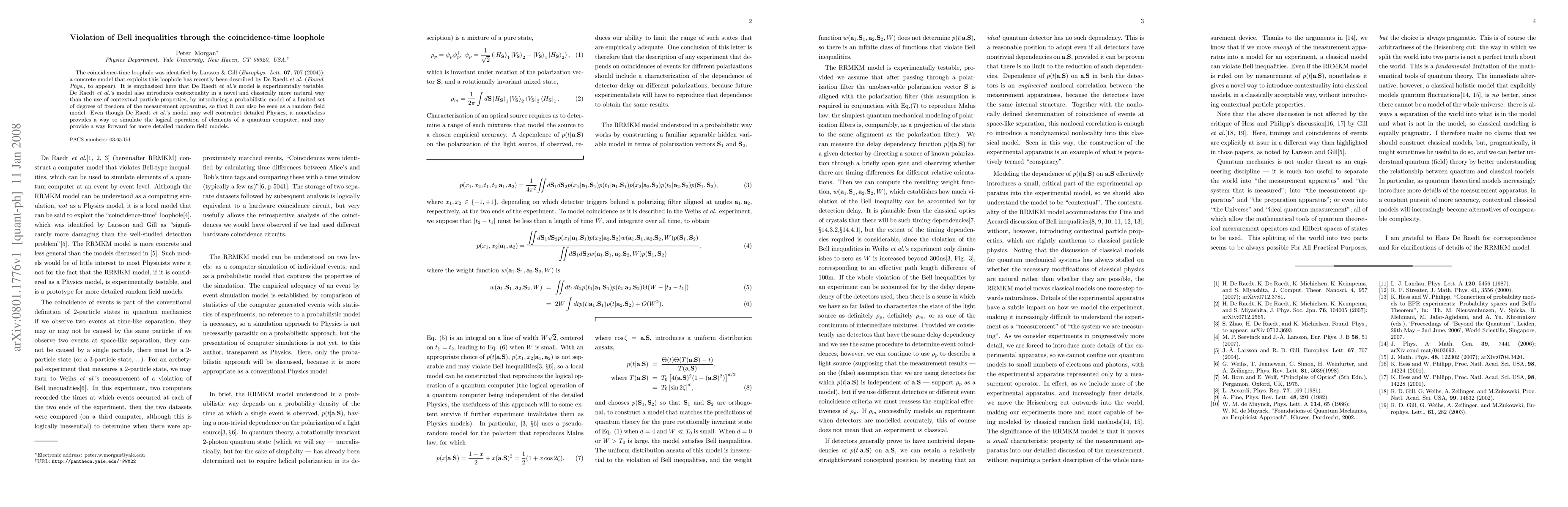 Researchers have developed a model that exploits the coincidence-time loophole to violate Bell inequalities in a way that can be tested experimentally, introducing a novel method for simulating quantum computer operations.
